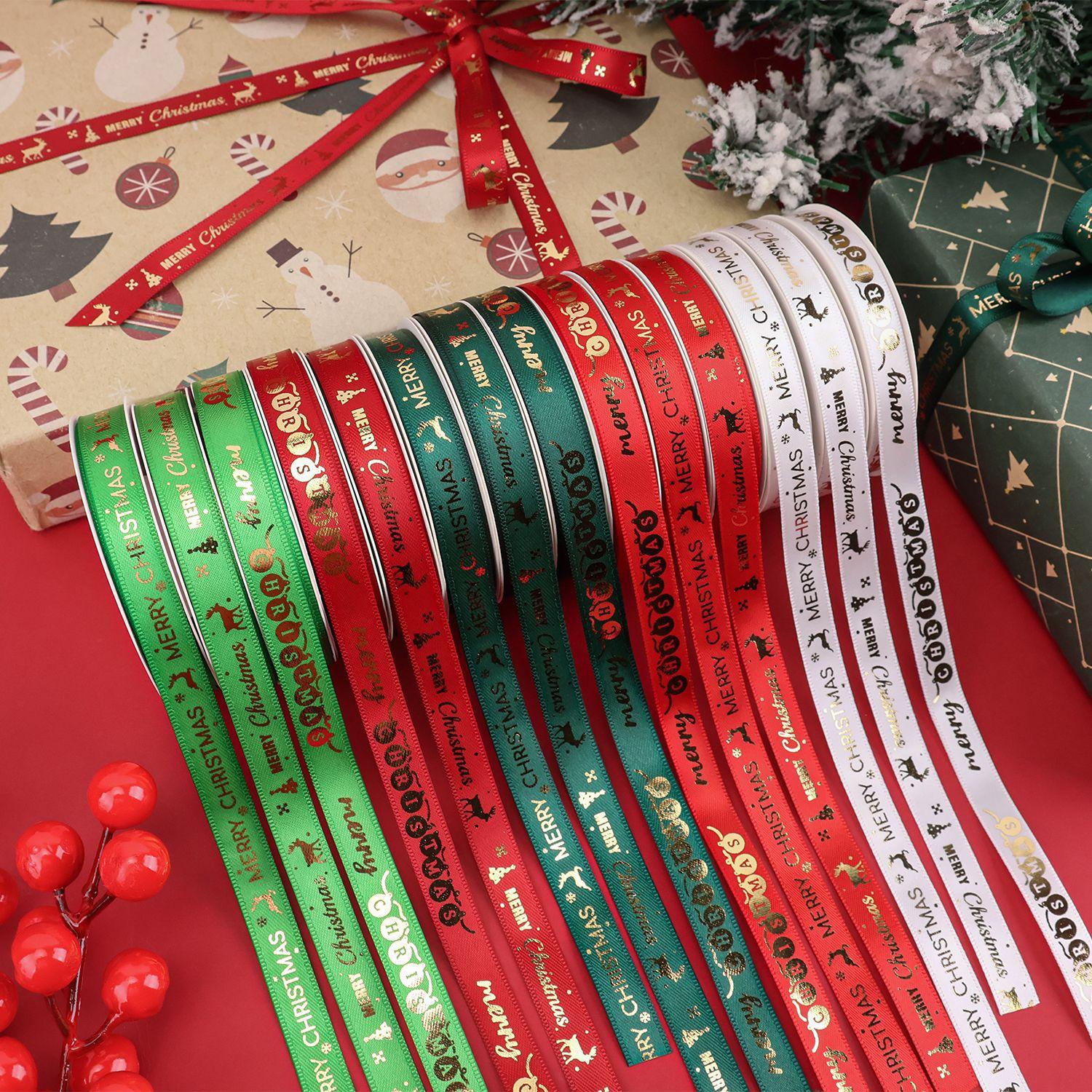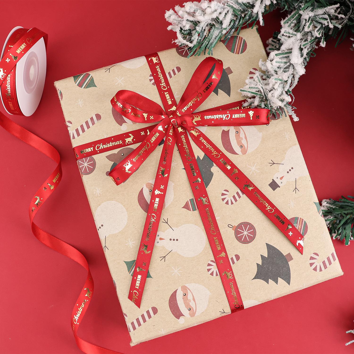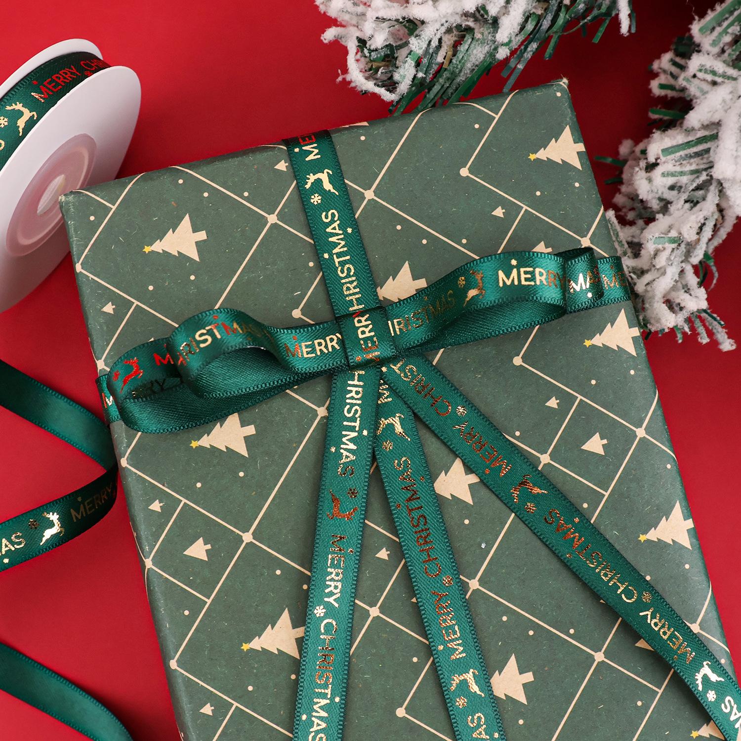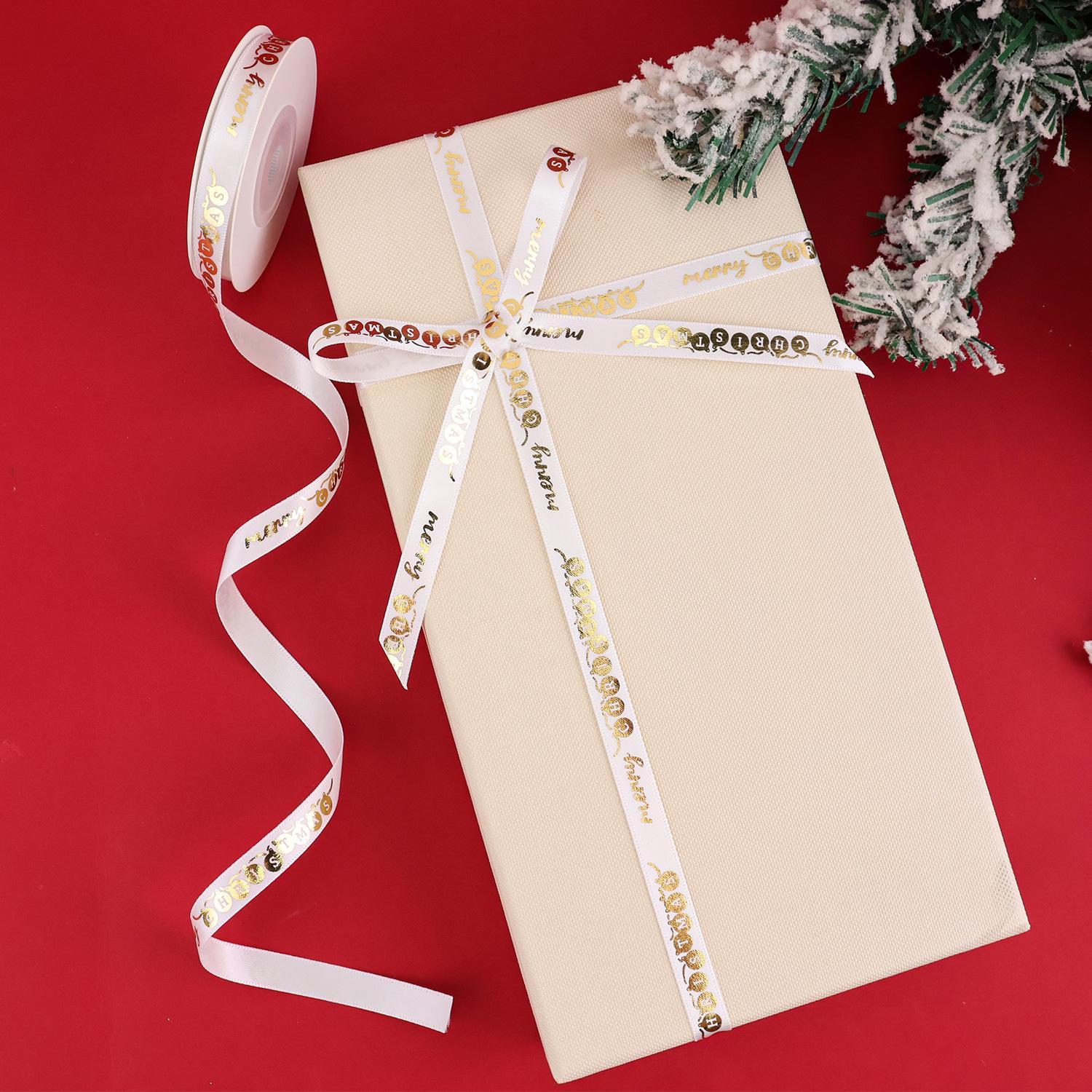 Cinta navideña de poliéster bronceada personalizada al por mayor, para ramos, regalos navideños, decoración DIY