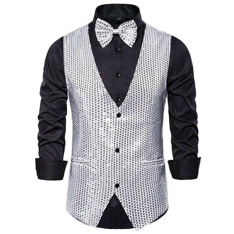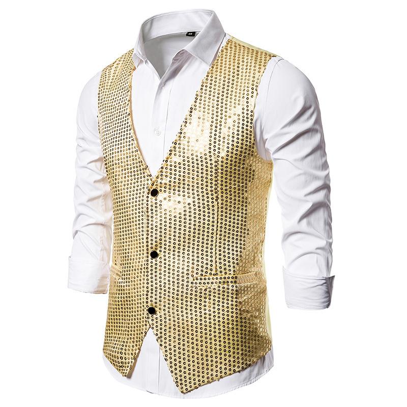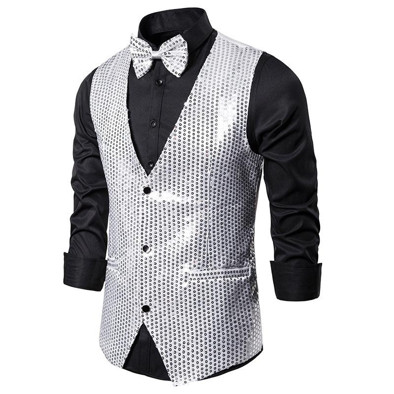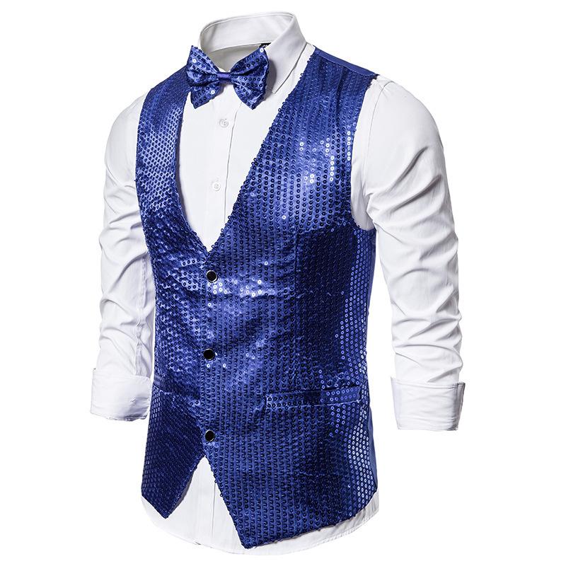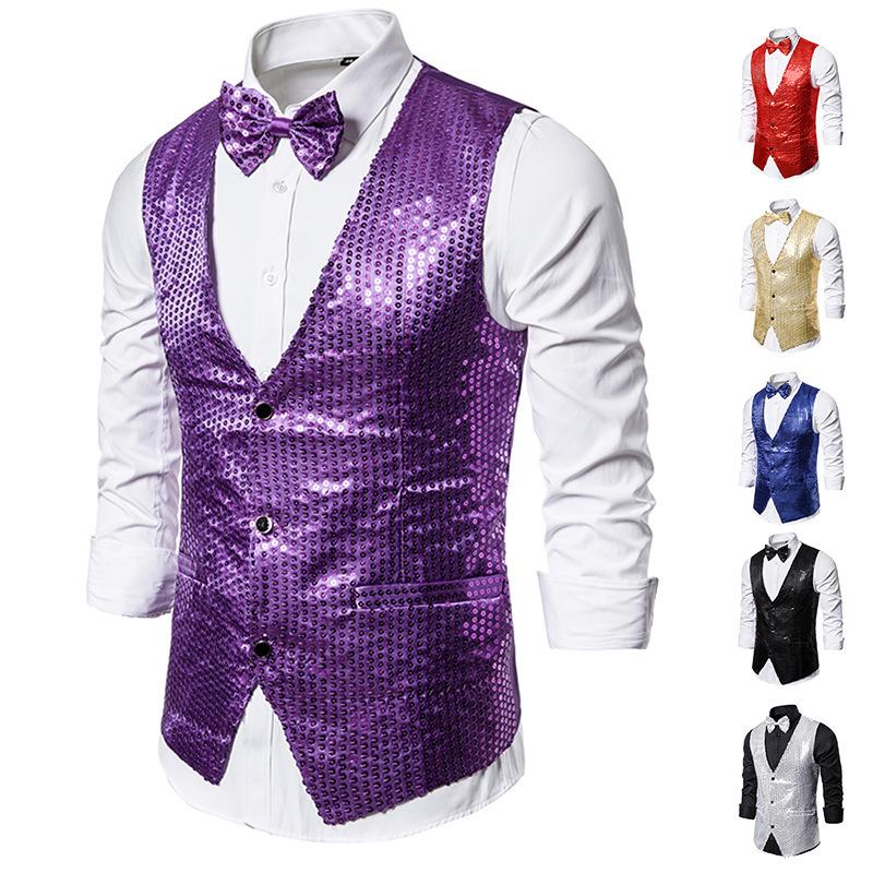 2023 Comercio Exterior Nuevo Chaleco de Lentejuelas para Hombre Chaqueta de Vestir para Actuación Tienda Nocturna Chaleco de Estudio para Anfitrión/MC para Hombre