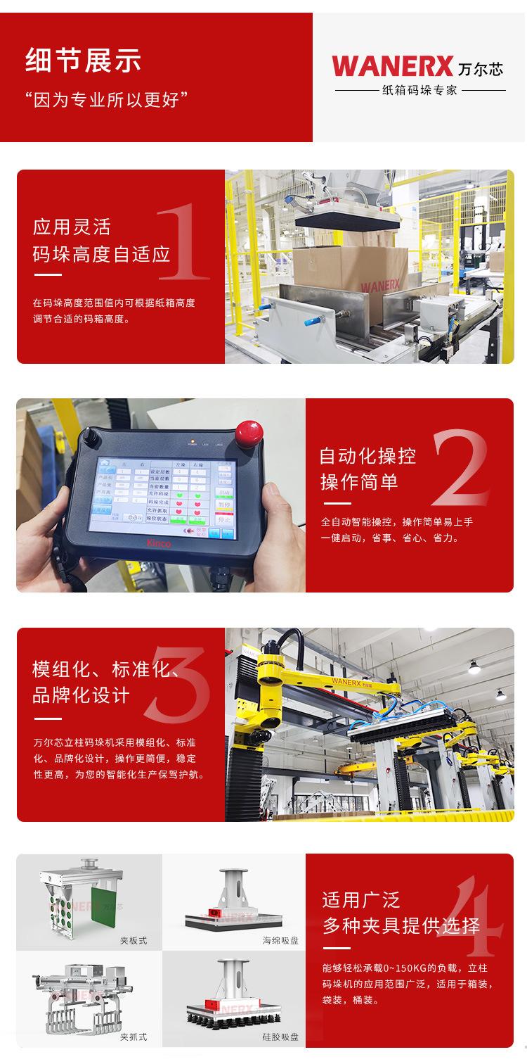 Fabricante de Equipos de Apilamiento de Columnas Línea de Producción Trasbordo Cesta de Rotación Cartón para Alimentos y Medicamentos Robot de Apilamiento de Agua Embotellada