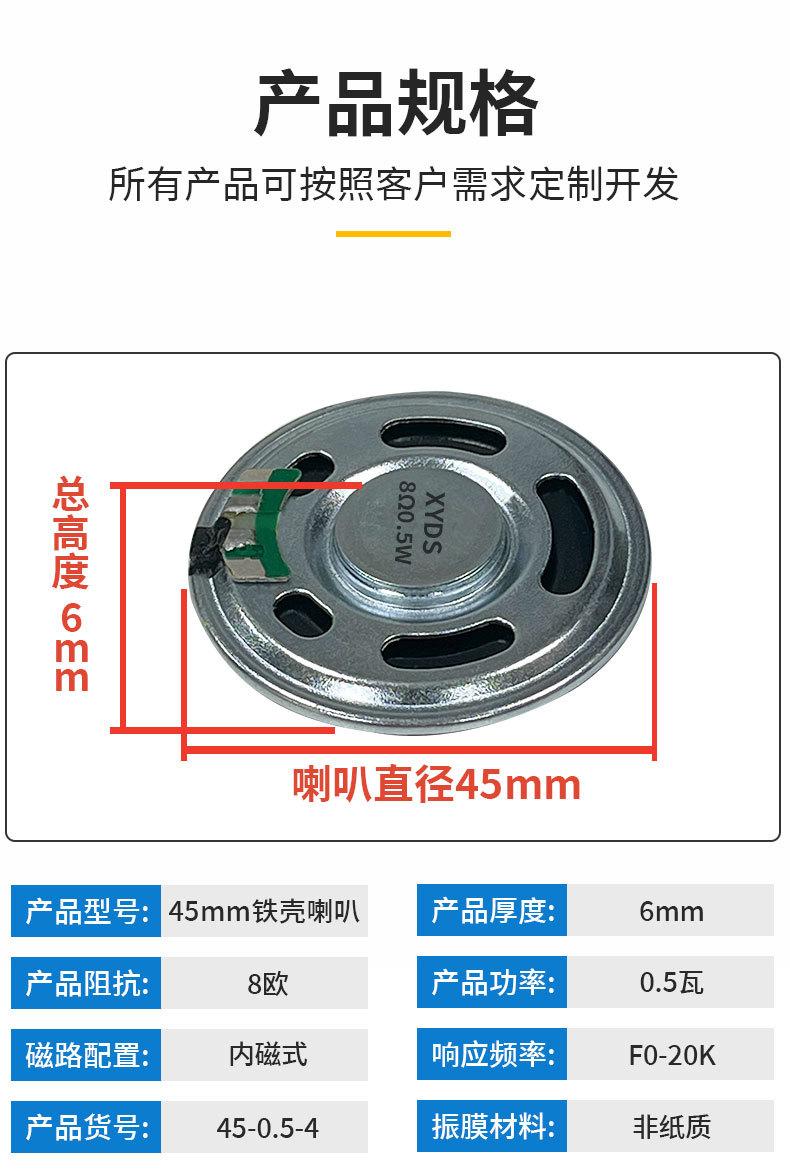 Altavoz Impermeable de Carcasa de Hierro de 45 mm 8 Ohmios 0.5 Vatios Alto Decibelio Altavoz de Alarma para Vehículo Eléctrico Venta Directa de Fábrica