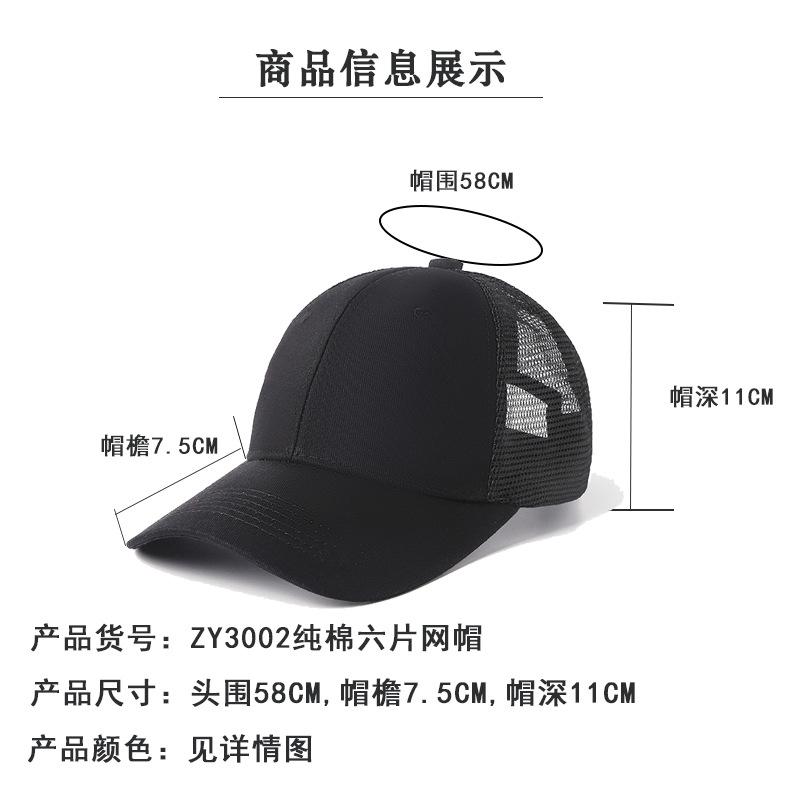 Gorra de malla de algodón puro con logotipo personalizado, gorra publicitaria de seis piezas con impresión, gorra de viaje personalizada, gorra de béisbol bordada con protección solar