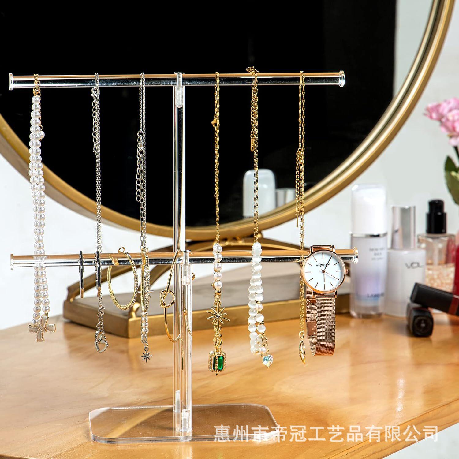 Estante de Almacenamiento Acrílico Soporte para Pulseras de Alta Joyería Color Sólido Transparente 2 Capas Exhibidor de Joyería Collar Anillo Reloj
