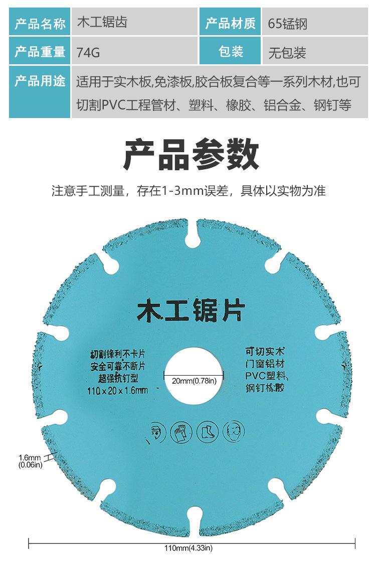 Hoja de corte para madera, acero, clavo, aluminio y PVC, hoja de sierra para carpintería con dientes en U, amoladora angular de corte rápido, máquina de corte, hoja de sierra eléctrica