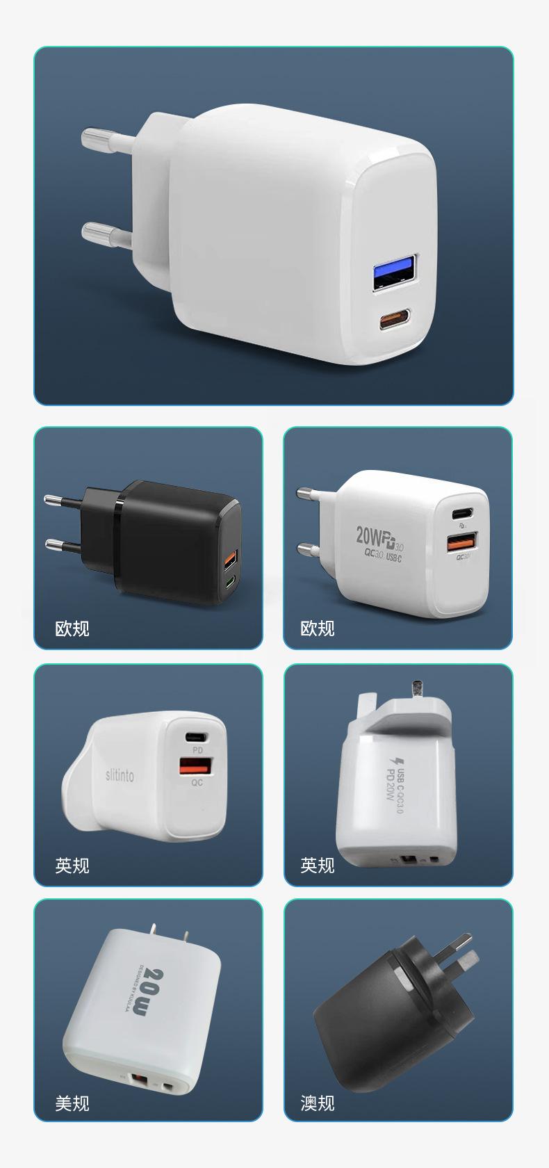 Cargador de carga rápida estándar británico de 20 W, compatible con protocolo PD, certificación CE, cabezal de carga rápida, adaptador de carga rápida QC3.0.