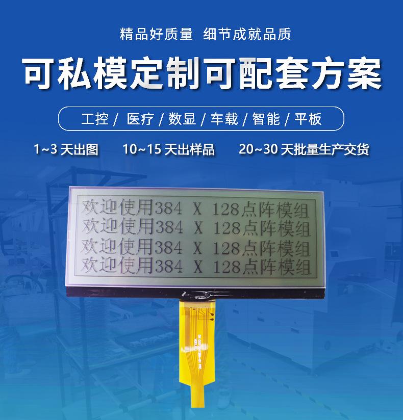 Pantalla LCD de matriz de puntos de 384*128, VA, matriz de puntos, fondo negro, carácter blanco, pantalla LCD de matriz de puntos