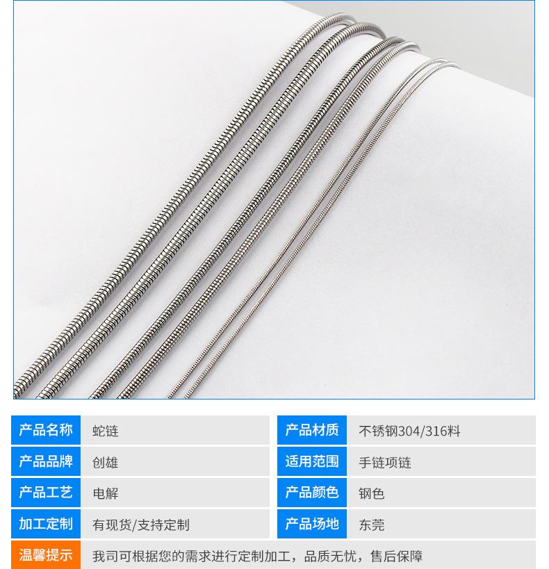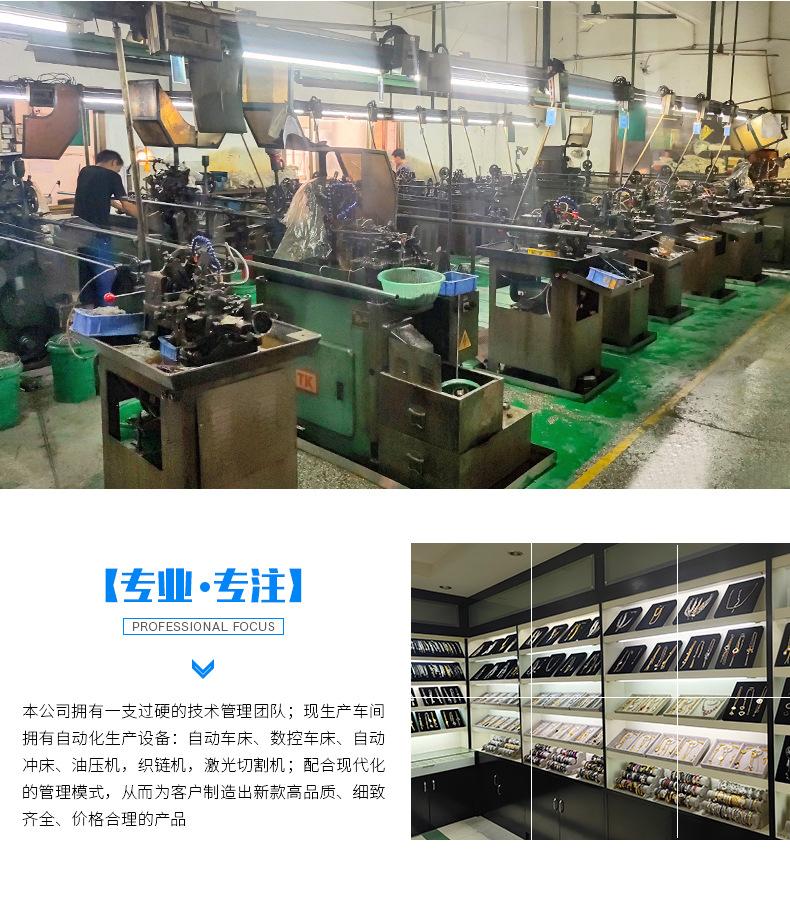 La empresa produce principalmente accesorios de joyería de acero inoxidable 304, 316, 316L: bobinas, llaveros, cierres de langosta, cierres de joyería, anillos de red, tubos redondos, tubos cuadrados, cierres de alambre moldeado, accesorios para los oídos (tapones para los oídos, agujas para los oídos, ganchos para los oídos, tapones de goma para los oídos), varillas OT, accesorios de estampado como cubiertas, copas de garra, mandriles planos, clips de cuerda, etc., varias piezas de torno de formas especiales como cuentas de ábaco, cubos, cabezas de bulbo, cabezas de serpiente redondas con agujeros horizontales, copas de piedra, varios estilos de cadenas, accesorios láser, etc.; Los productos de joyería de acero inoxidable (316L, 316, 304) incluyen: aretes, collares, cadenas de ropa, pulseras, brazaletes, anillos, colgantes, etc. Los productos se venden en el país y en el extranjero (Europa, América, África y países del sudeste asiático).