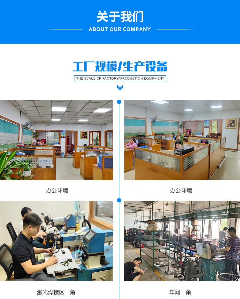 Actualmente, cuenta con una planta de 2000 metros cuadrados y más de 100 empleados. Se encuentra en el delta del río Perla de Guangdong, con una ubicación privilegiada y fácil acceso. Se encuentra en Chang'an, en el extremo sur de Dongguan, colindando con Shenzhen al este, el estuario del río Perla al sur y el puerto de Humen al oeste. La empresa cuenta con un excelente equipo de gestión técnica; su taller de producción cuenta con equipos automatizados: tornos automáticos, tornos CNC, punzonadoras automáticas, prensas hidráulicas, telares de cadena y máquinas de corte láser. Gracias a sus modernos modelos de gestión, puede producir productos nuevos, exquisitos y completos de alta calidad a precios razonables para los clientes.