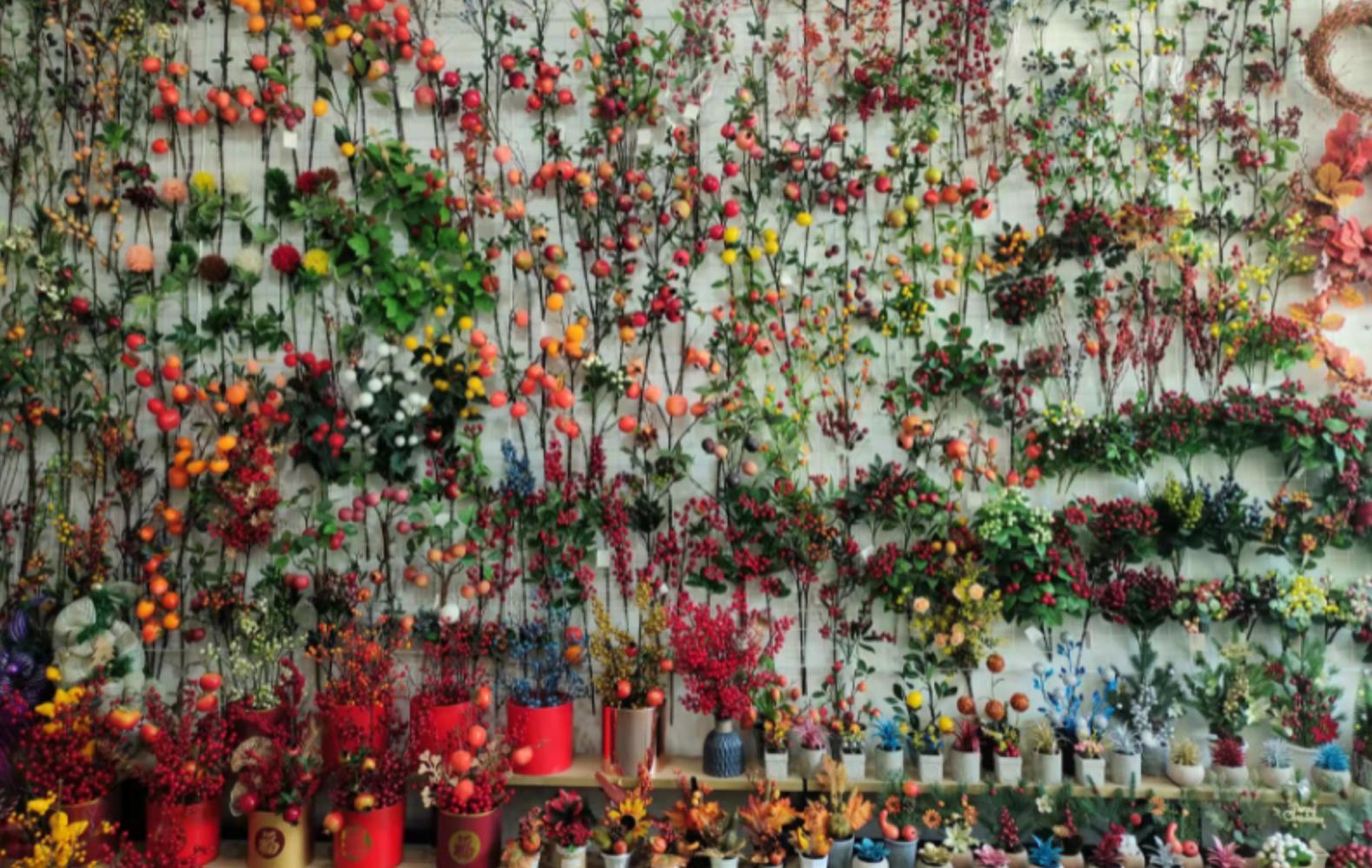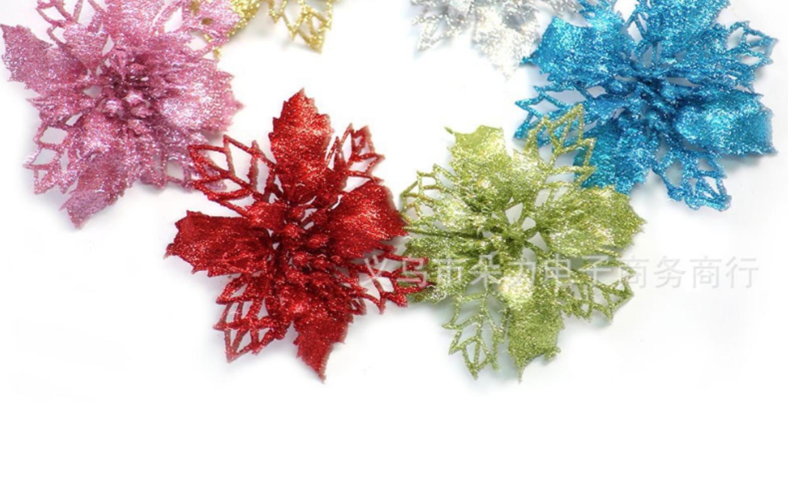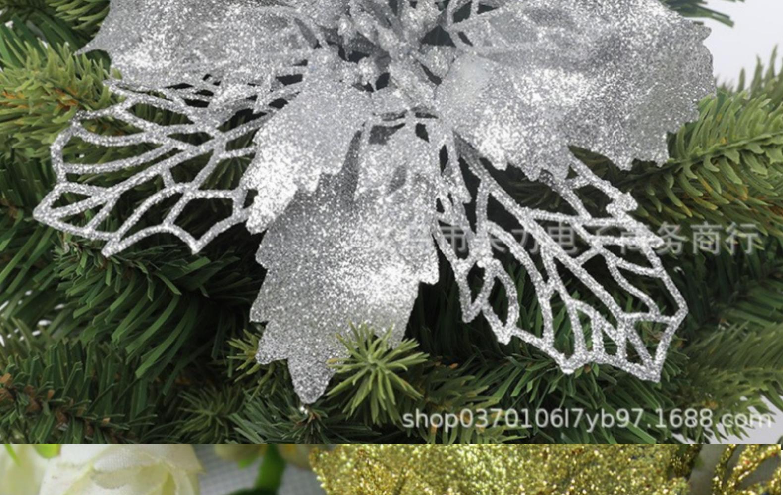 Guirnalda de árbol de Navidad con flores huecas rosas transfronterizas, accesorios de decoración de ratán, adornos navideños colgantes