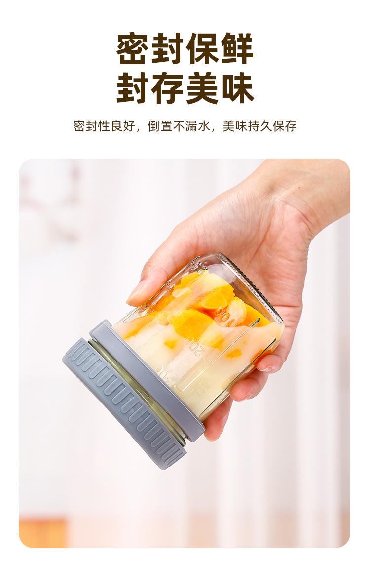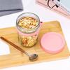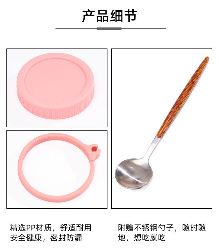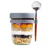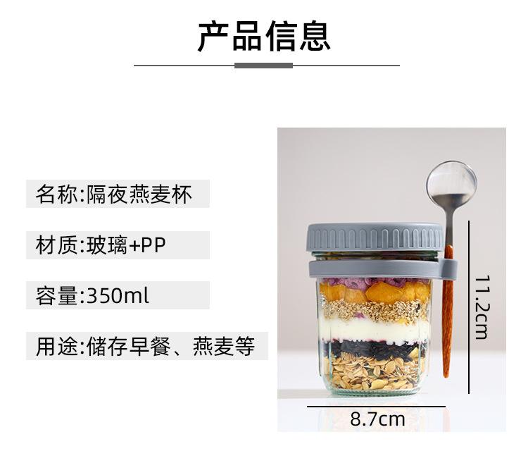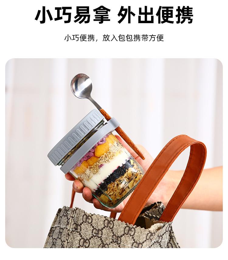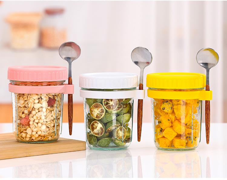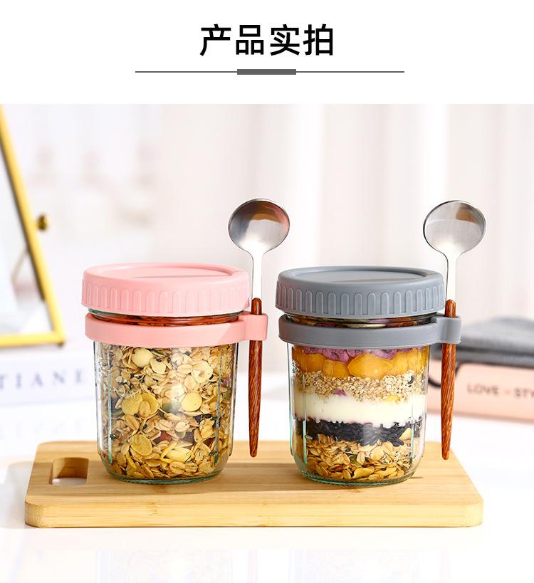 Taza de Avena Nocturna Taza para Desayuno de Oficina Taza de Leche Yogur para Niñas con Tapa Vaso de Vidrio Sellado Portátil con Cuchara