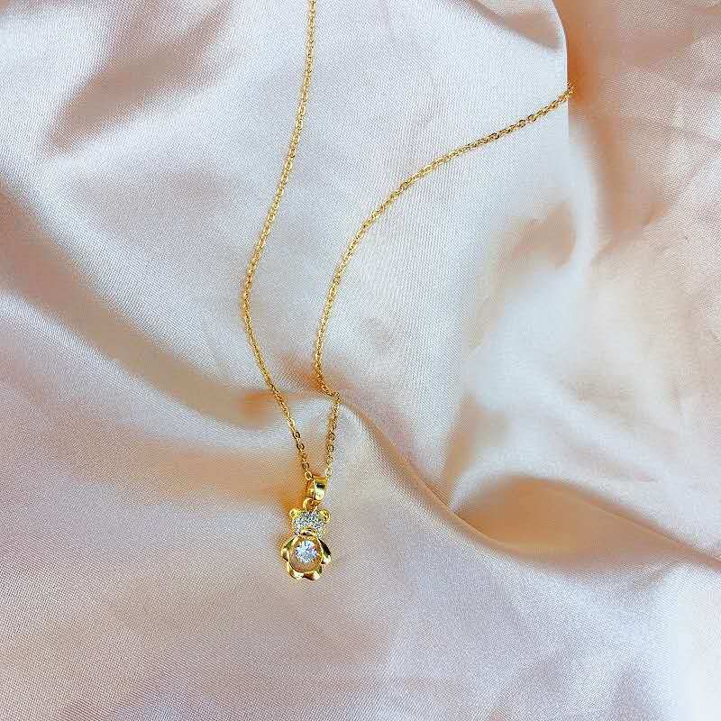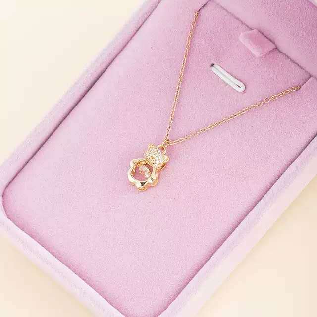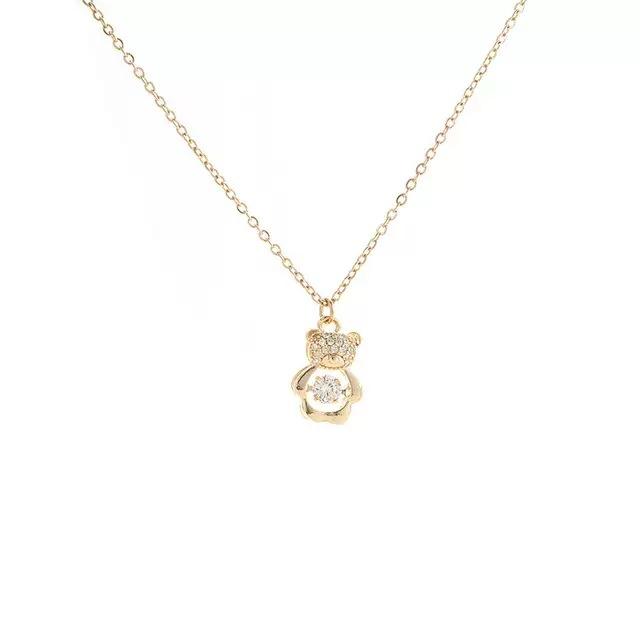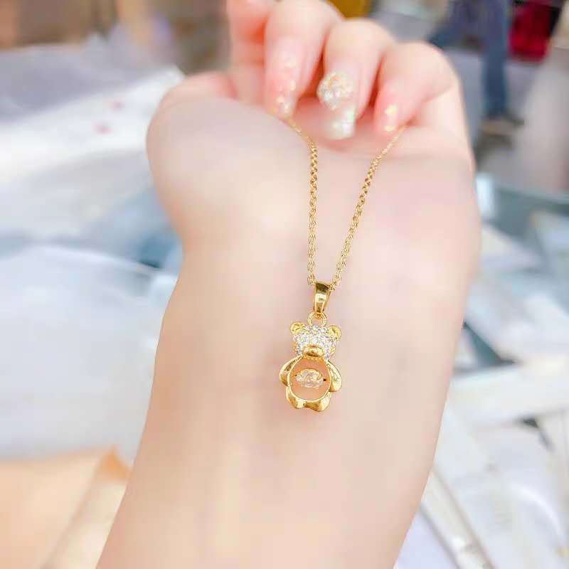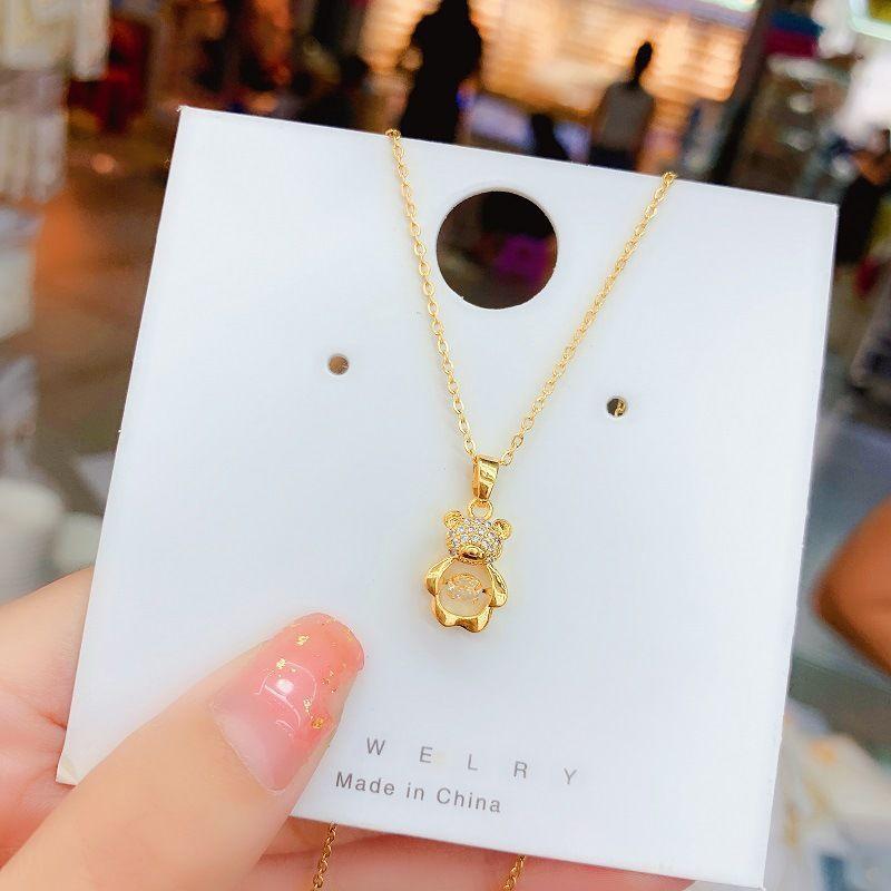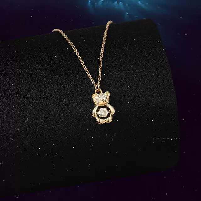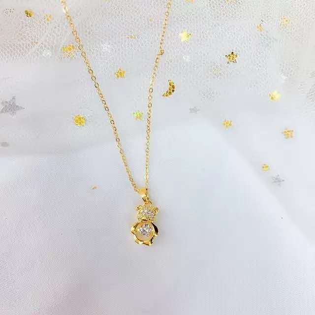 Collar de acero de titanio con diseño de oso inteligente Shake the Same, cadena de clavícula corta Joker con personalidad en oro de 18 quilates y color rojo neto.