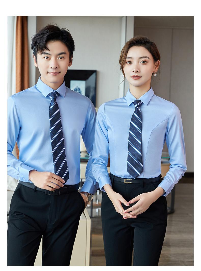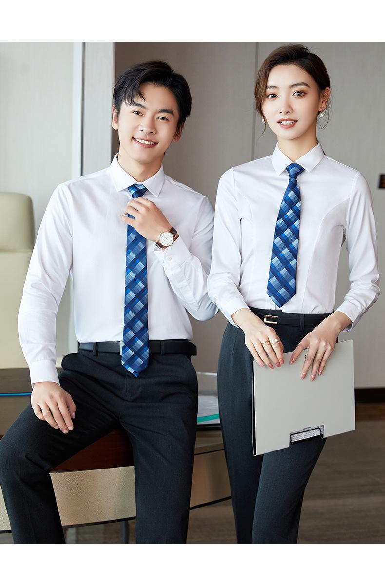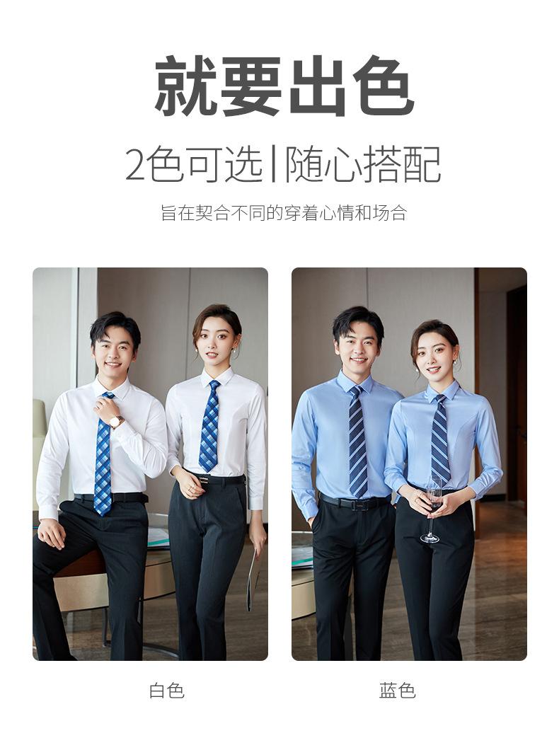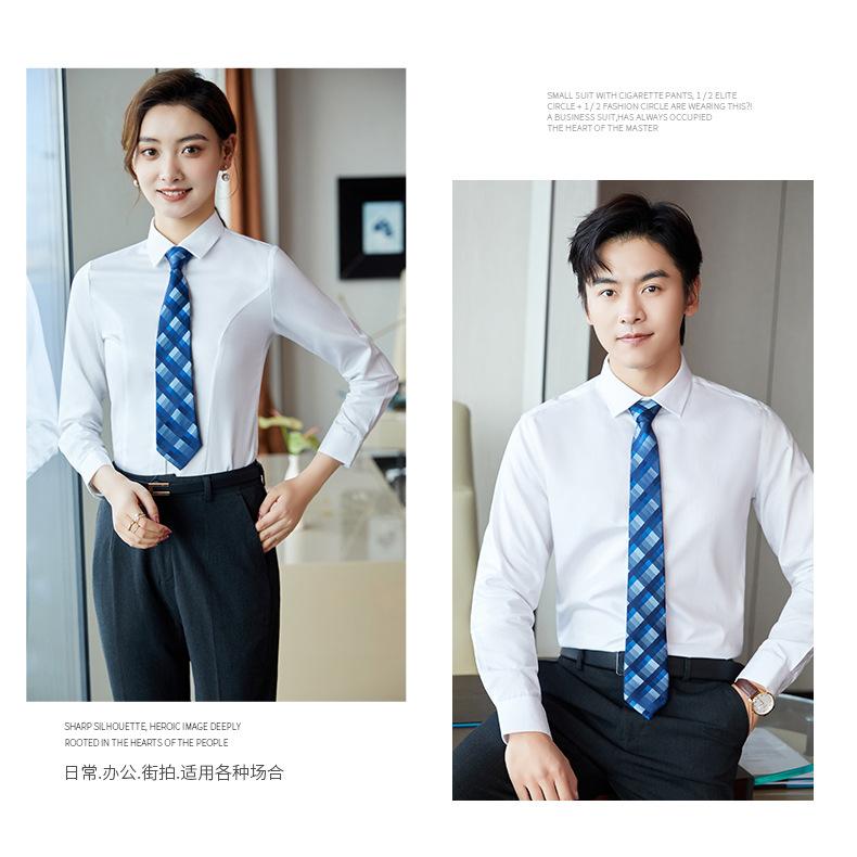 Camisa blanca de algodón puro para hombre Business DP sin planchado, corte slim fit formal azul profesional de manga larga, 100%