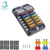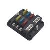 Caja de fusibles de cuchilla de 6 vías para coche con portafusibles positivo y negativo, luz LED, conexión de perno, caja de fusibles multivía