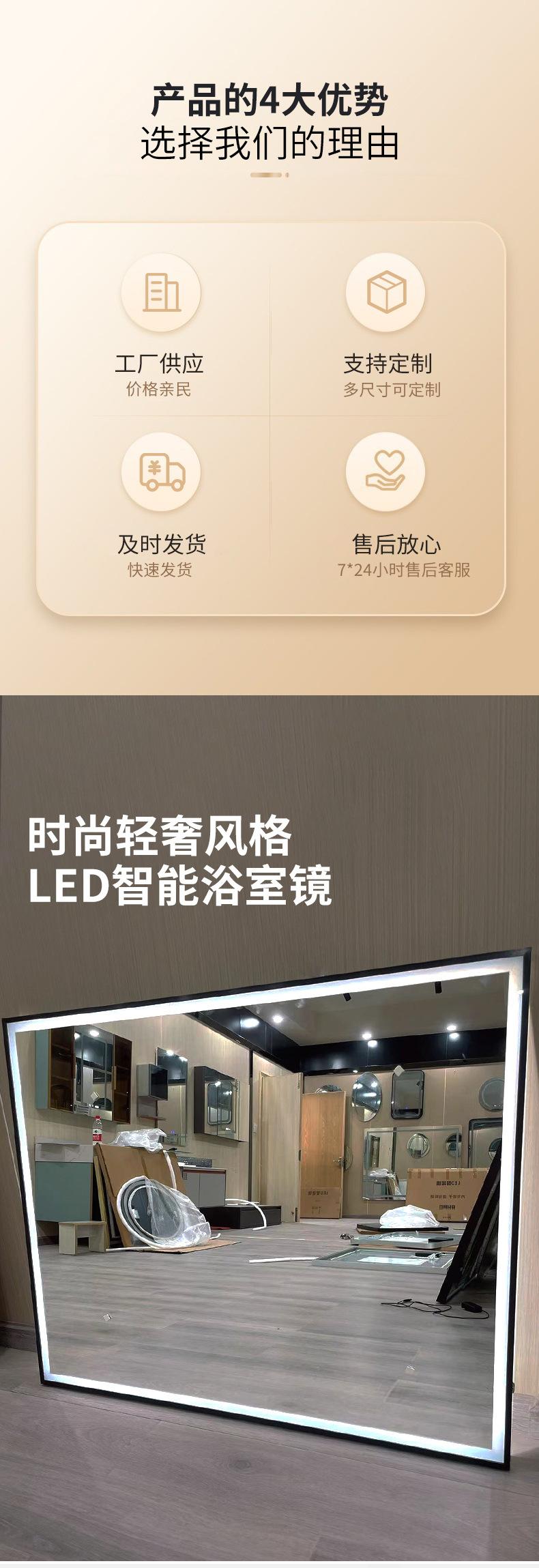 Espejo Inteligente LED Desempañante Cuadrado Montado en la Pared Espejo Cosmético Luminoso Espejo de Baño Espejo Cuadrado Enmarcado Espejo de Pared para Baño