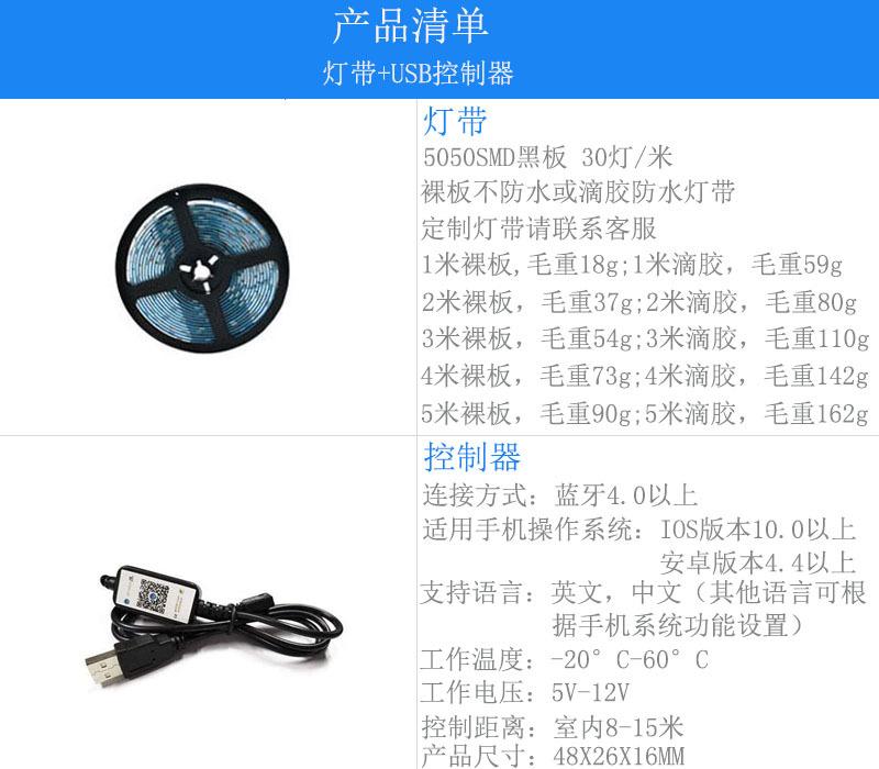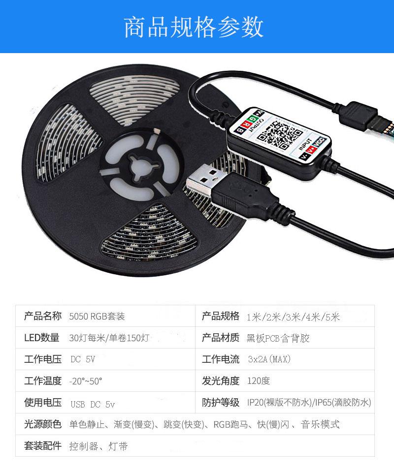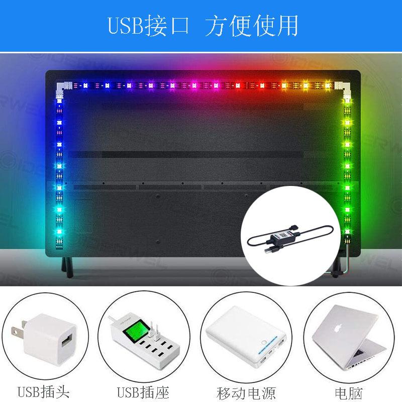 Luz de fondo para TV con USB5V 5050RGB Epoxi Pizarra Barra de luz para TV Control Inteligente por APP Bluetooth Móvil
