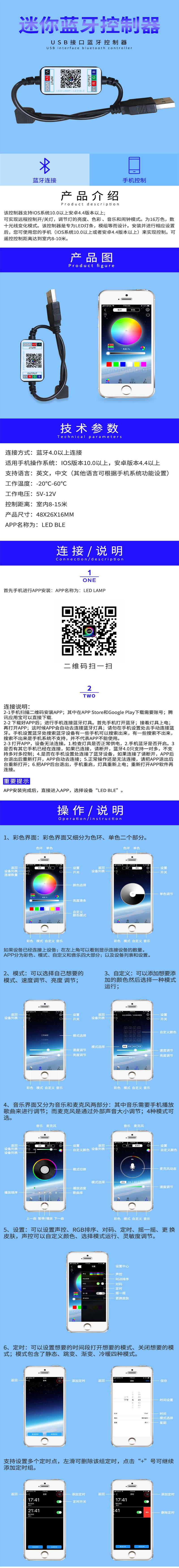【8】, Control remoto de 20/44 teclas para cambiar color/modo/brillo.