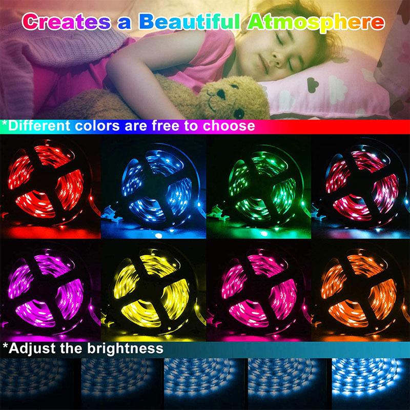 La tira de luz LED multifuncional es ideal para diversas aplicaciones de iluminación: hogar, coche, tienda, karaoke, hotel, puente, etc. Puedes ajustar fácilmente el brillo, el color o el modo con el control remoto. Además, puedes guardar tus ajustes favoritos.