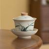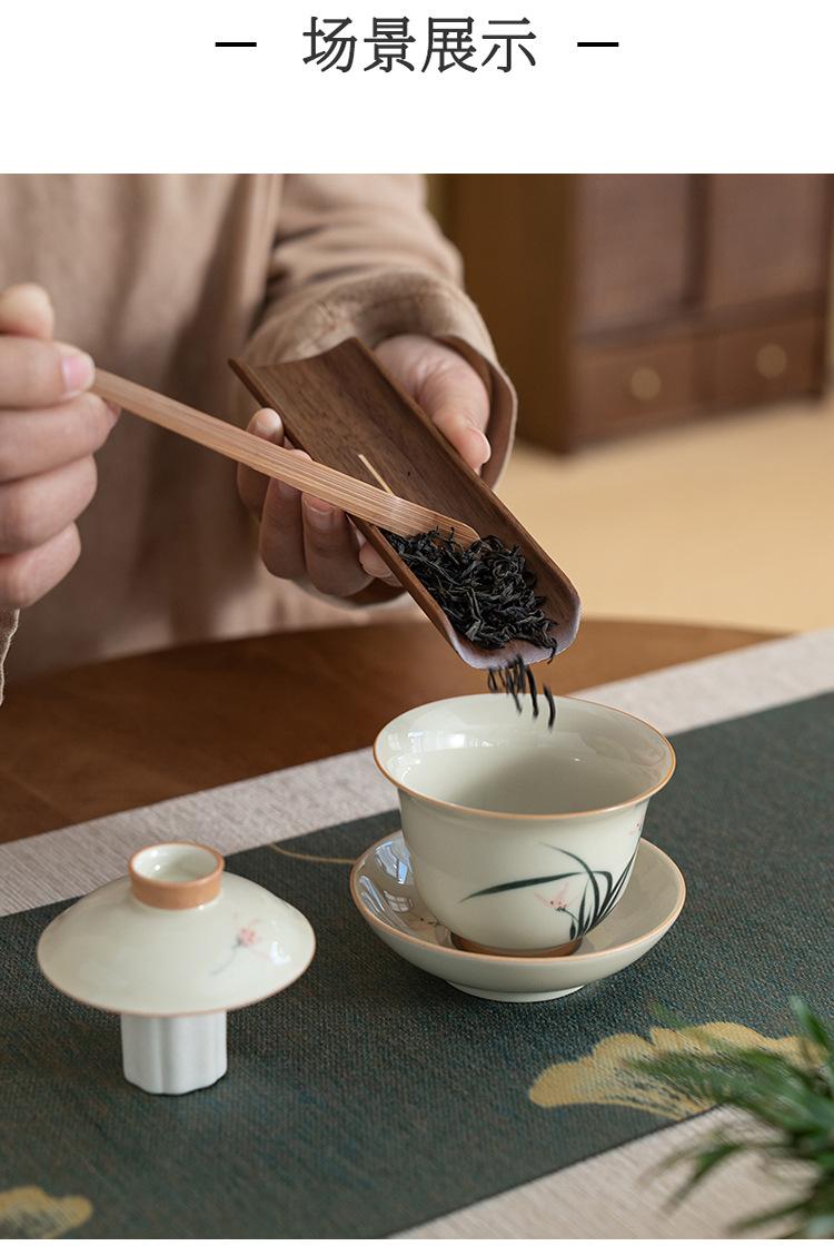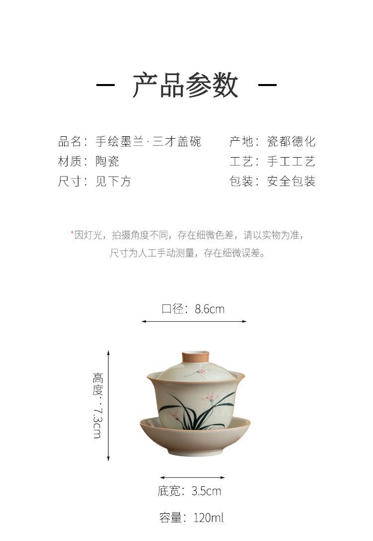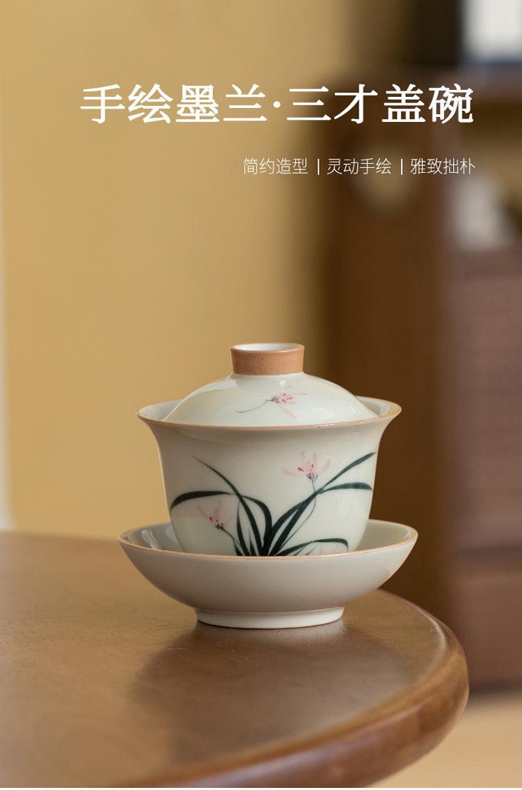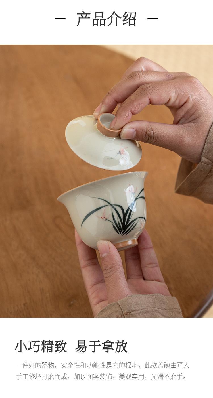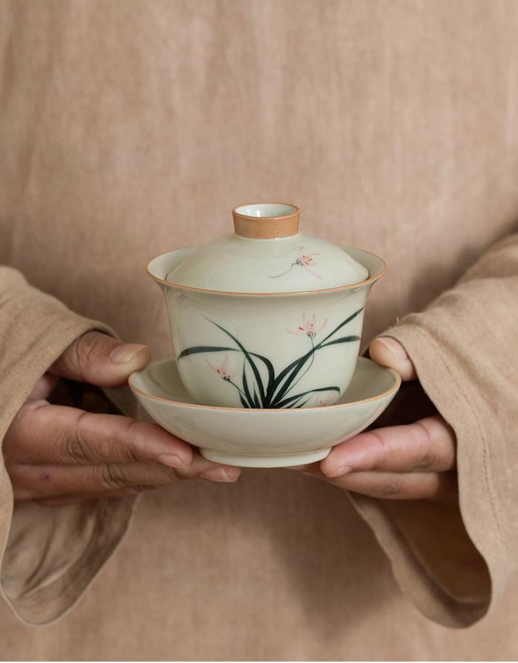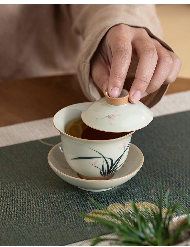 Cuenco de cerámica pintado a mano para té de kung fu, juego de té literario para el hogar, tres cuencos individuales de orquídea esmaltada de color, de pequeña capacidad.