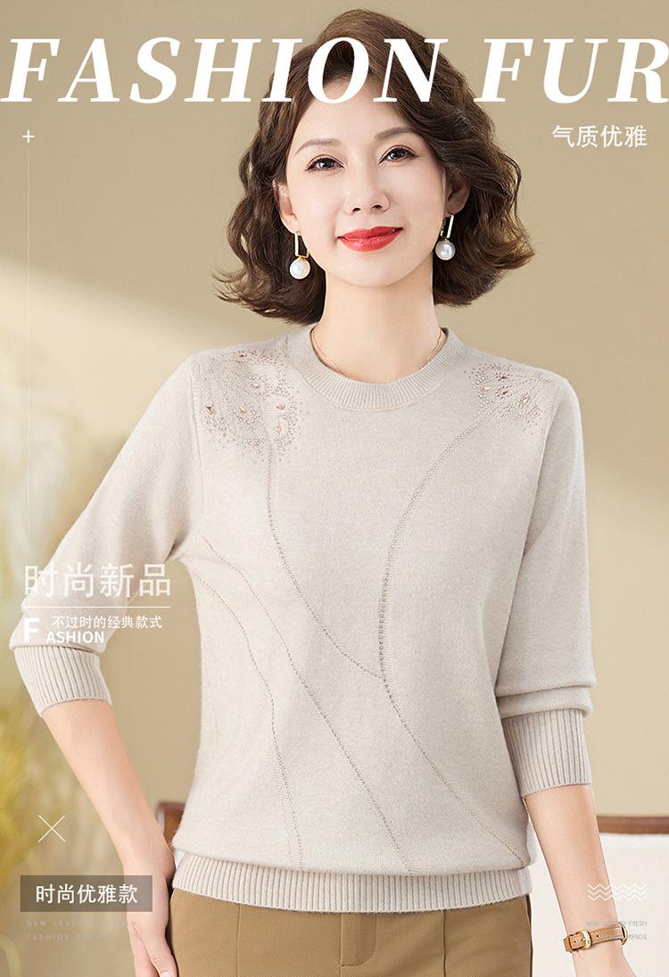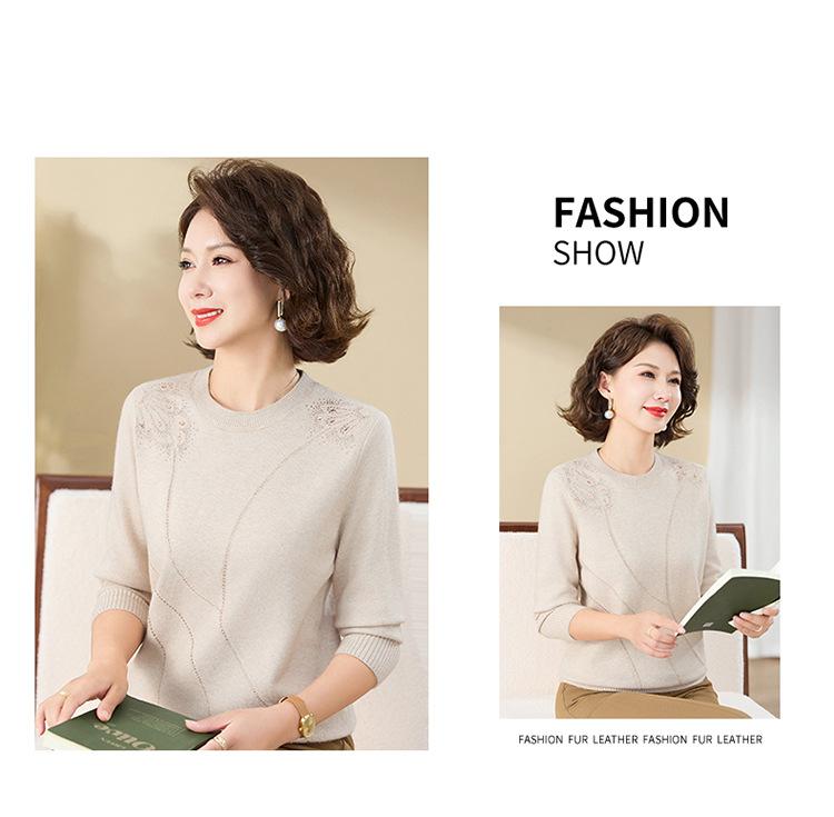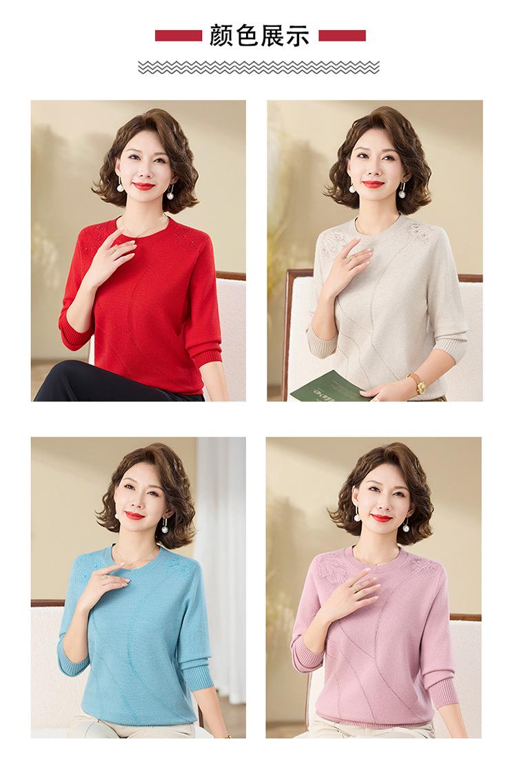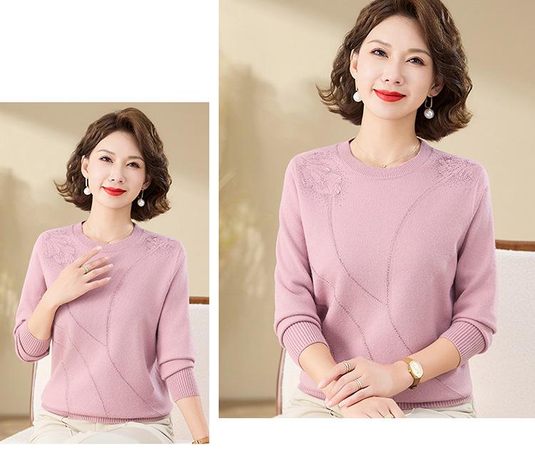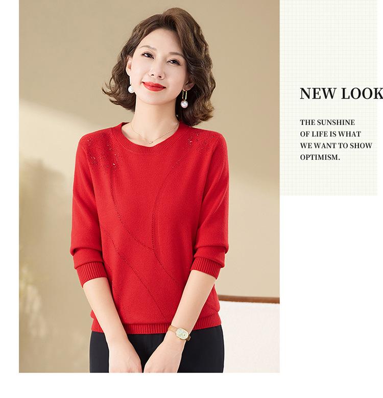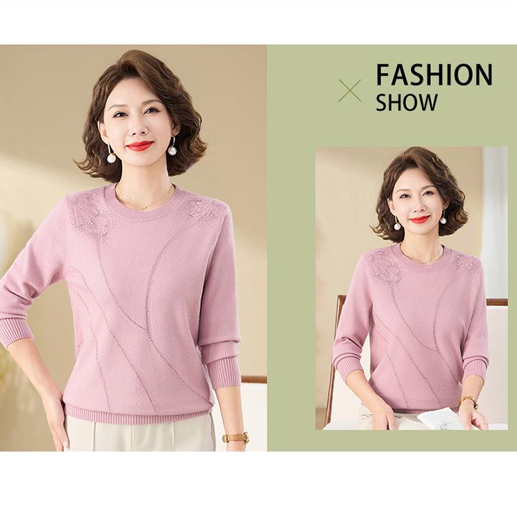 Suéter promocional de otoño para mujeres de mediana edad y mayores, nuevo suéter de moda de talla grande, camisa básica de cuello redondo para madre holgada