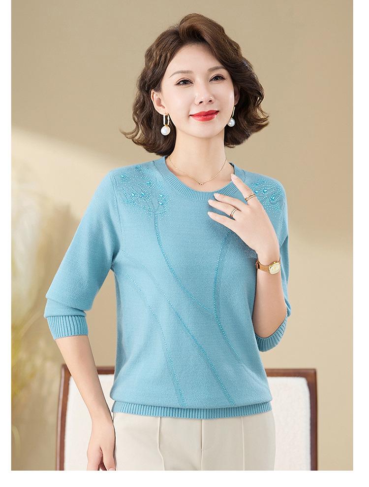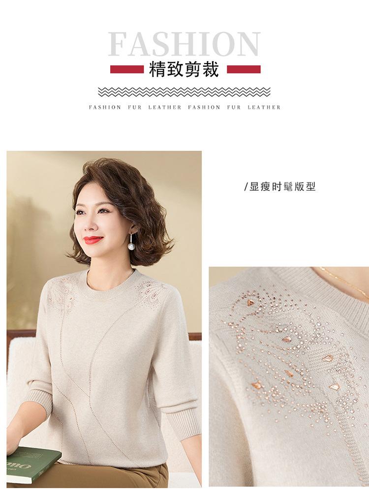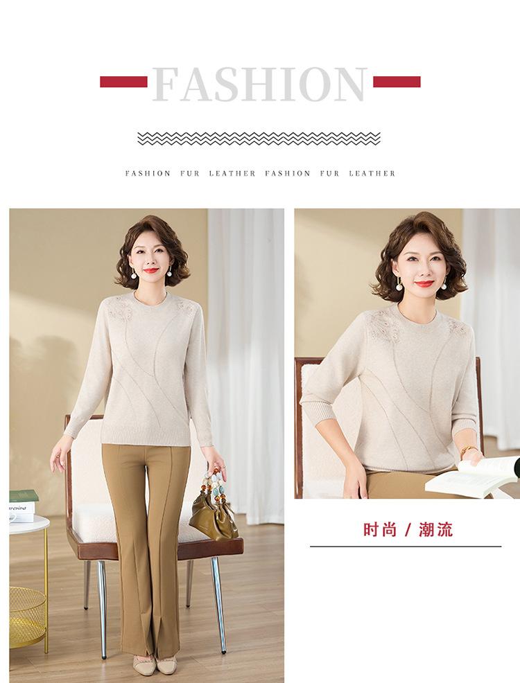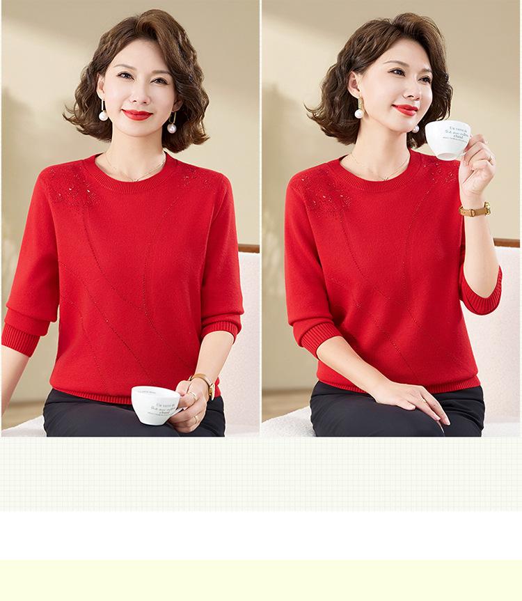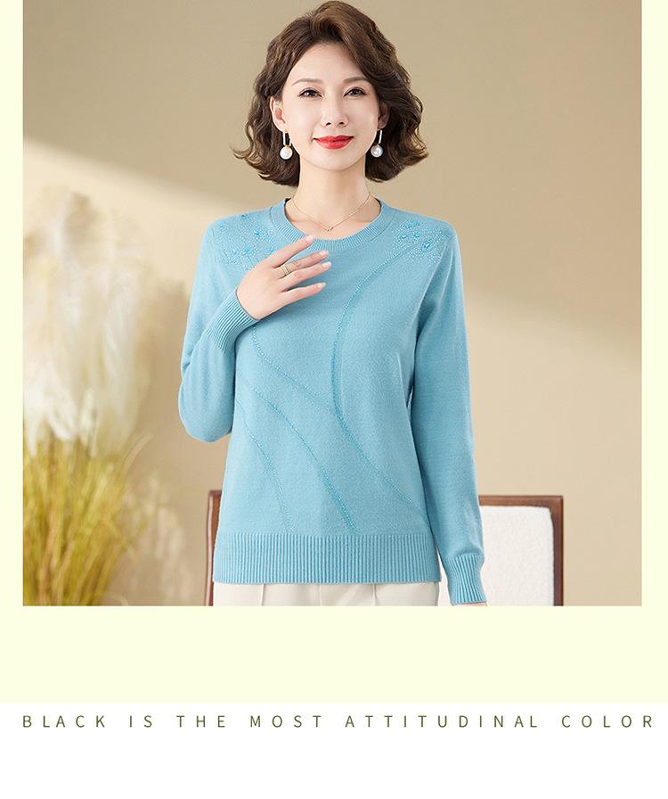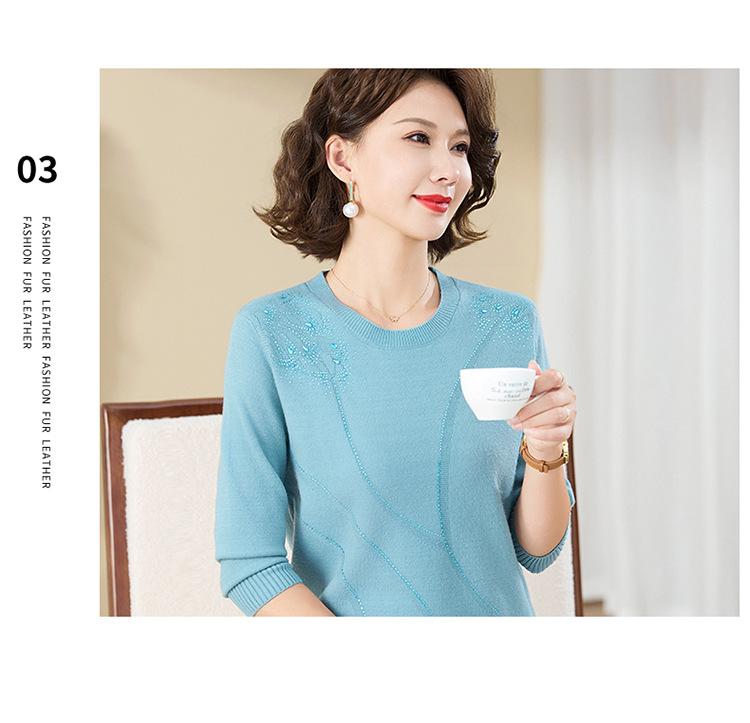 Suéter promocional de otoño para mujeres de mediana edad y mayores, nuevo suéter de moda de talla grande, camisa básica de cuello redondo para madre holgada
