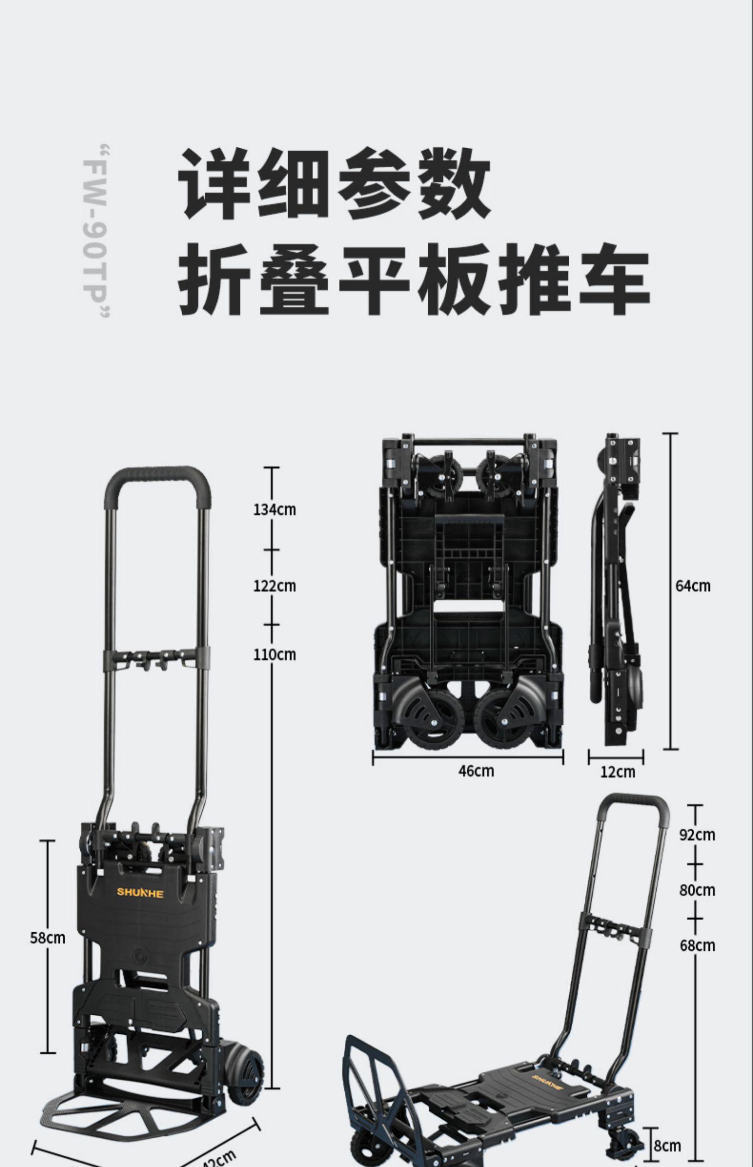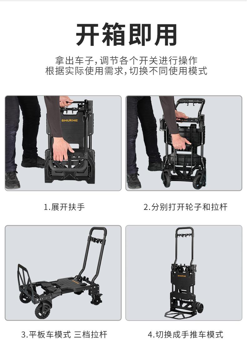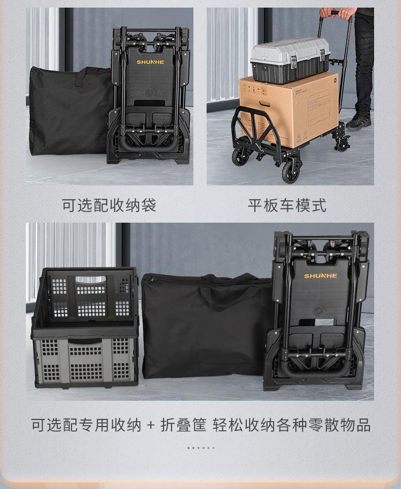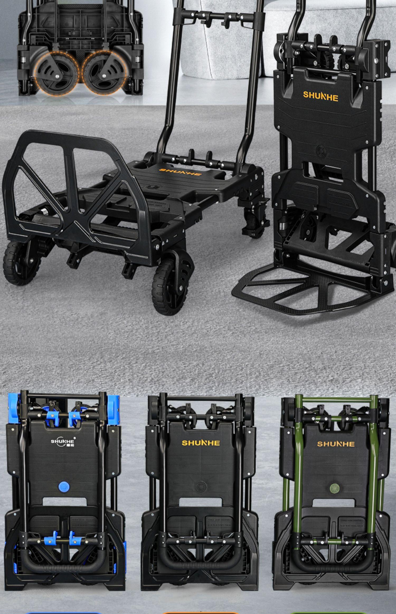 Venta al por mayor Shunhe Plegable Silencioso Hogar Plataforma Carro Carretilla Portátil Carro de Empuje Carretilla Tirar Carga Mano