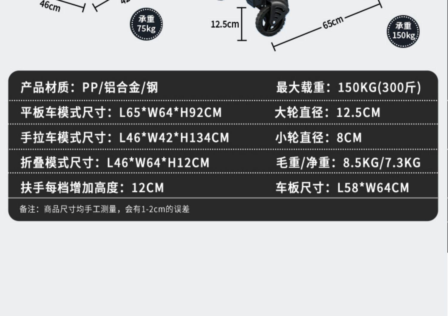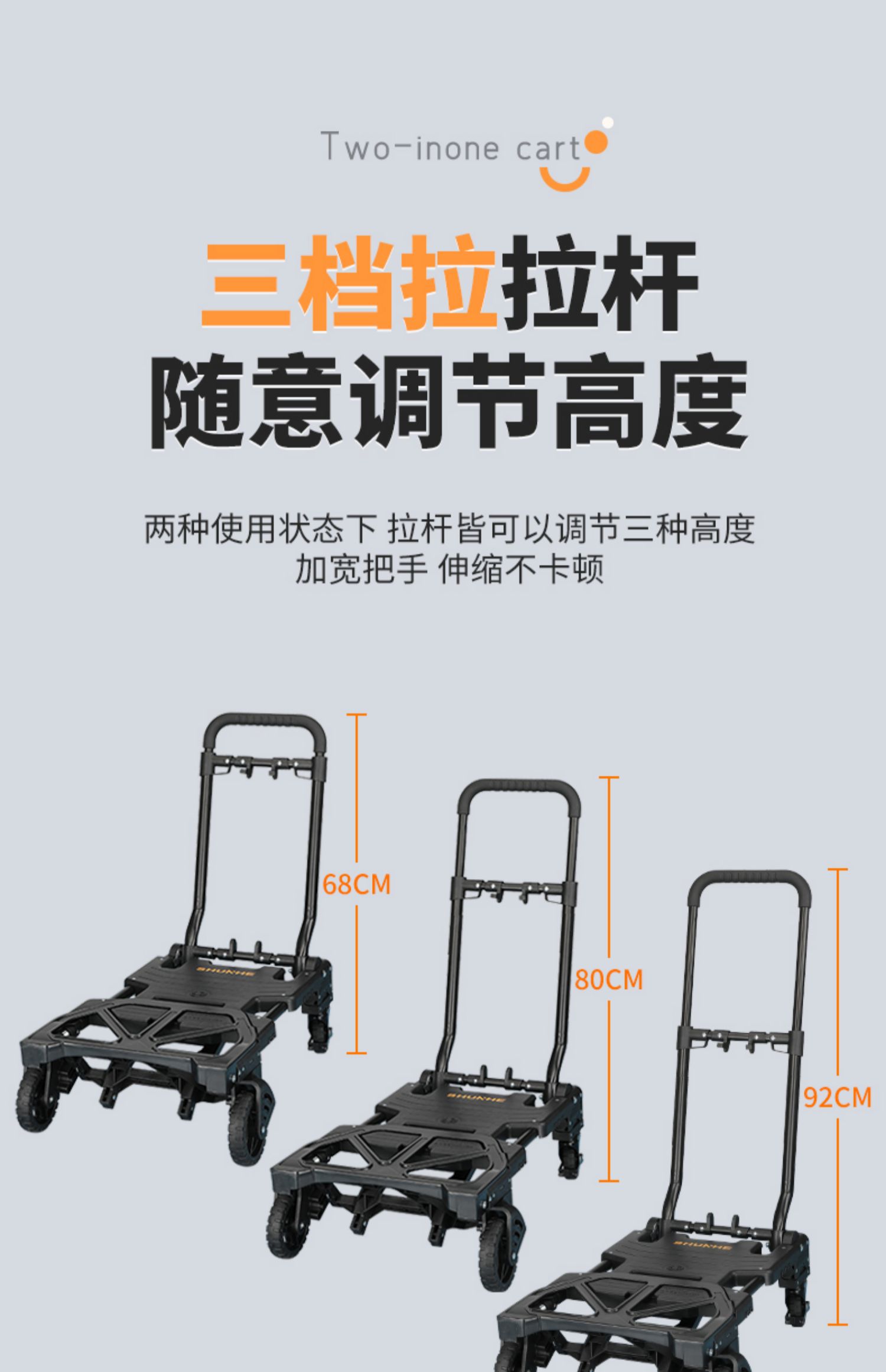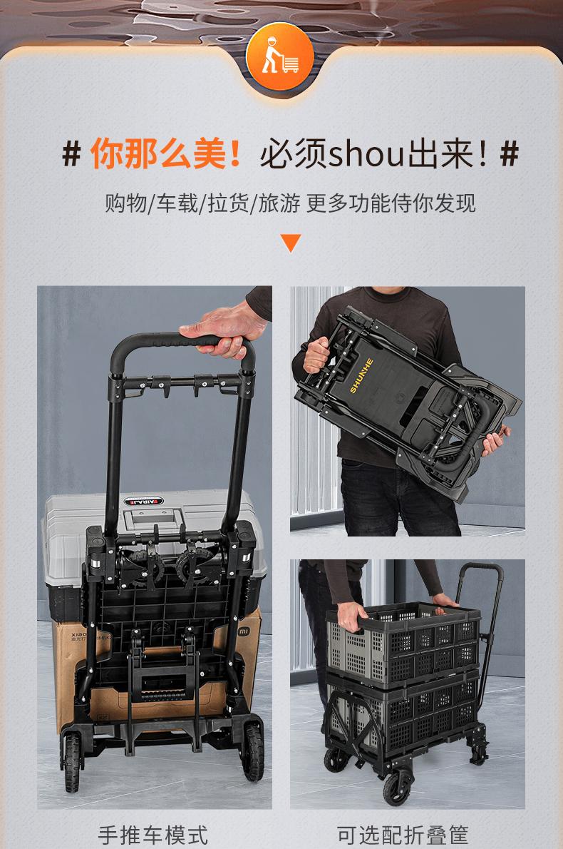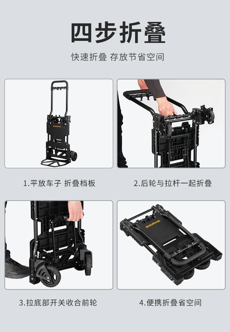 Venta al por mayor Shunhe Plegable Silencioso Hogar Plataforma Carro Carretilla Portátil Carro de Empuje Carretilla Tirar Carga Mano