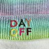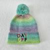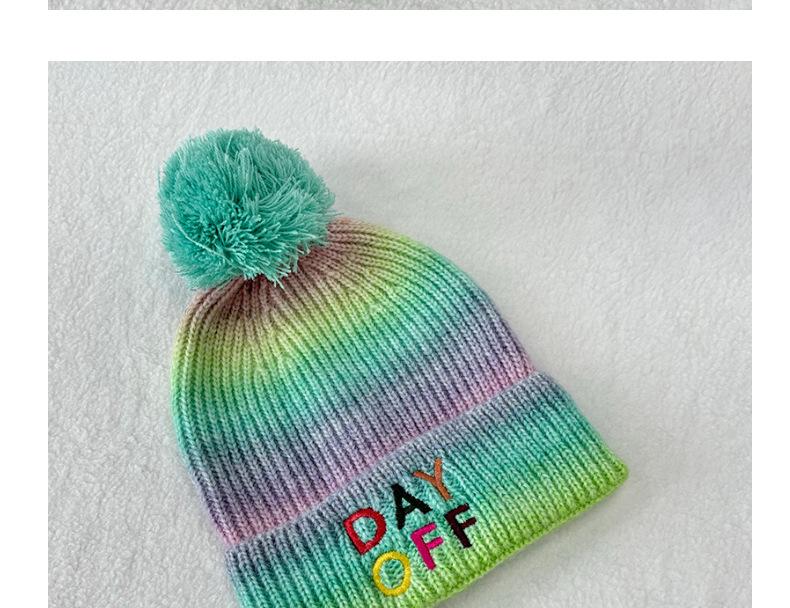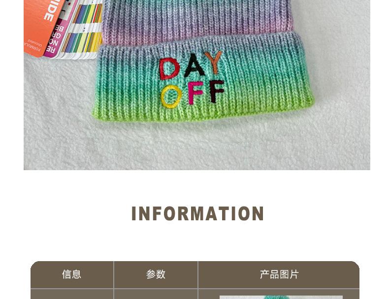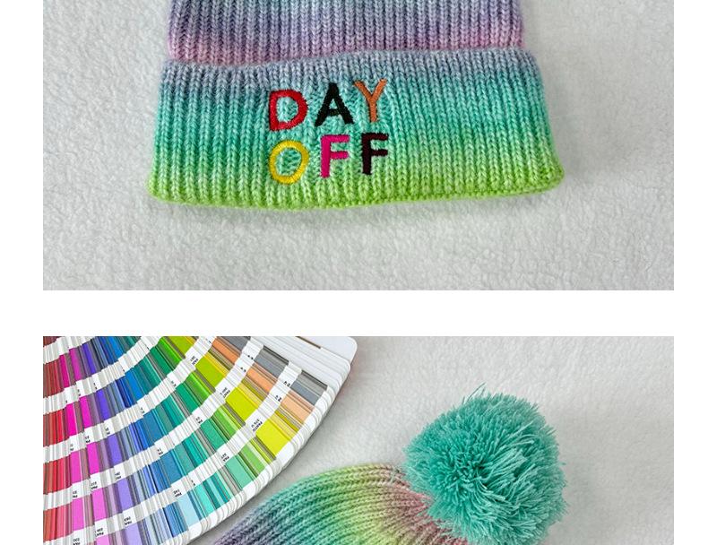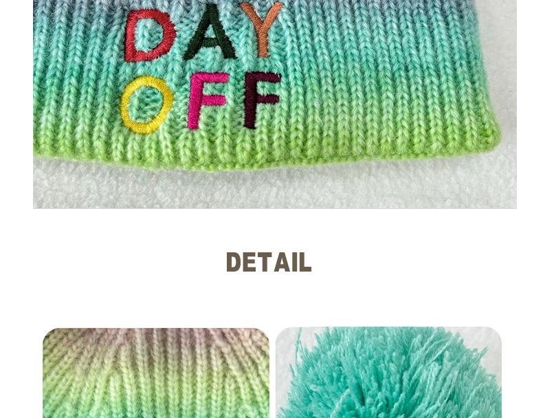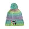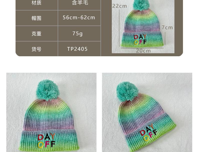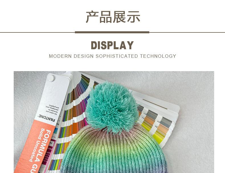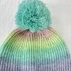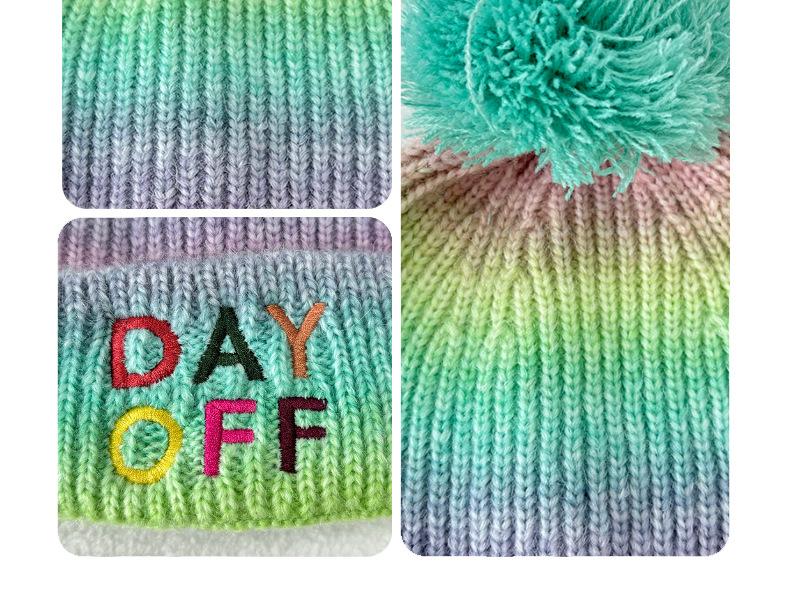 Gorro de punto bordado transfronterizo tendencia otoño e invierno degradado tie-dye jacquard gorro cálido moda arcoíris pompón de lana gorro de lana mujeres