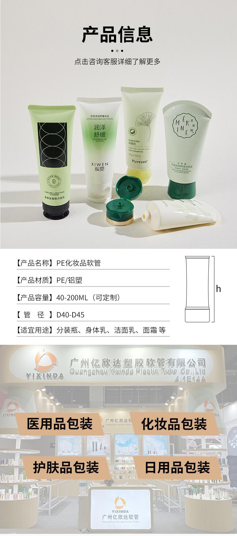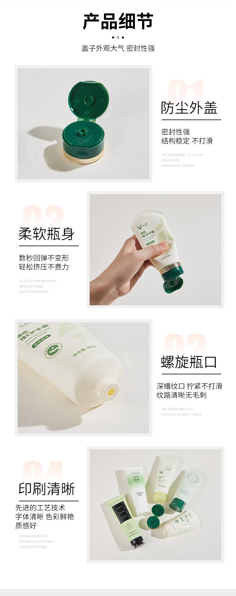 Producto para el Cuidado de la Piel Botella Exprimible Tapa Flip-Top Material de Empaque Limpiador Facial 100g Loción Corporal Crema para Manos Material de Empaque Botella de Empaque Pan Limpiador