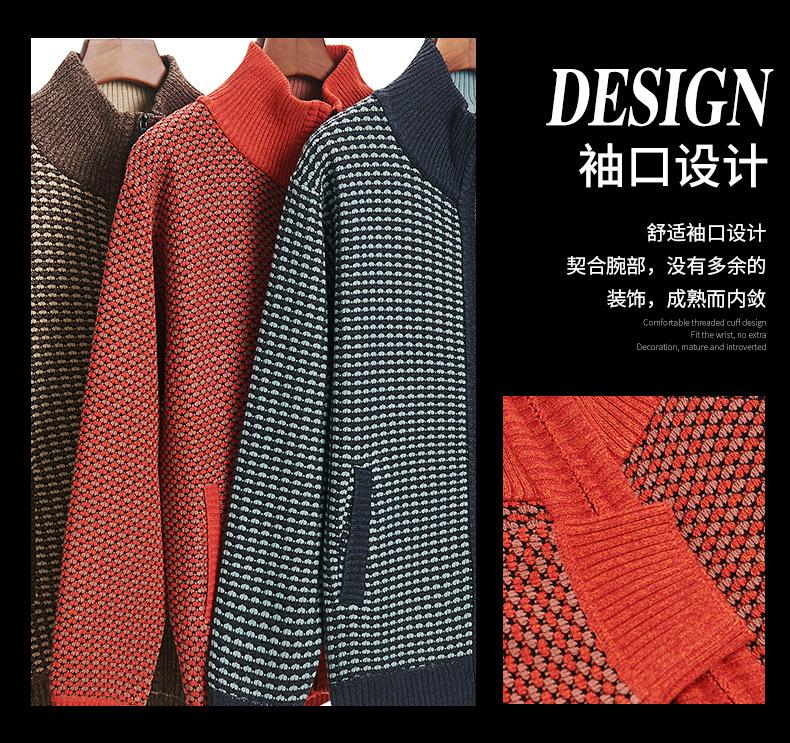 Suéter cruzado grueso con forro polar de otoño e invierno para hombre, suéter casual de moda con cremallera larga, ropa nueva cálida y cómoda para hombre