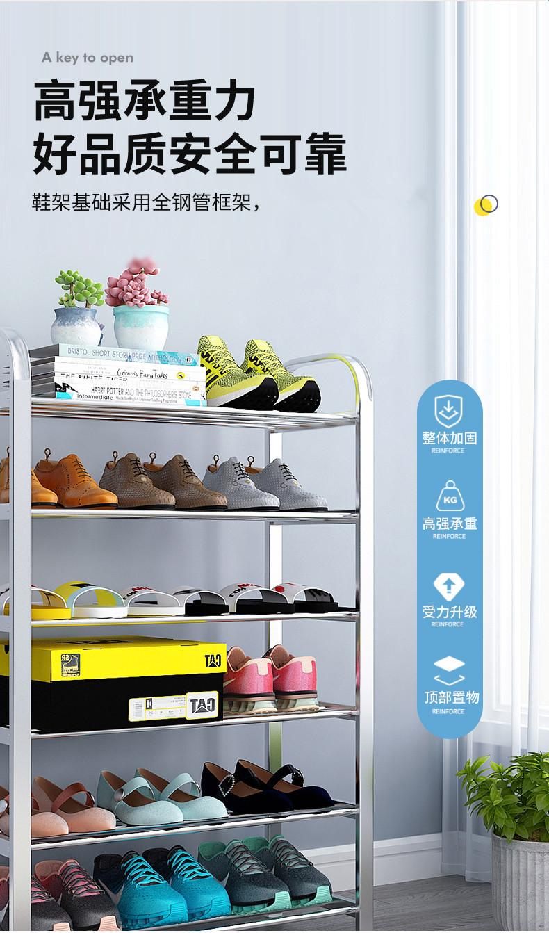 Zapatero de acero inoxidable multicapa para uso doméstico, entrada sencilla, dormitorio, zapatero económico, almacenamiento a prueba de polvo, ahorro de espacio, varios tamaños disponibles,