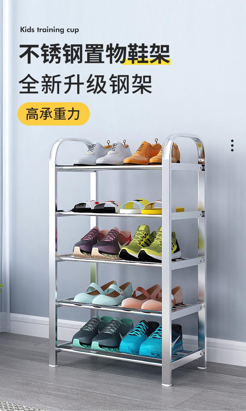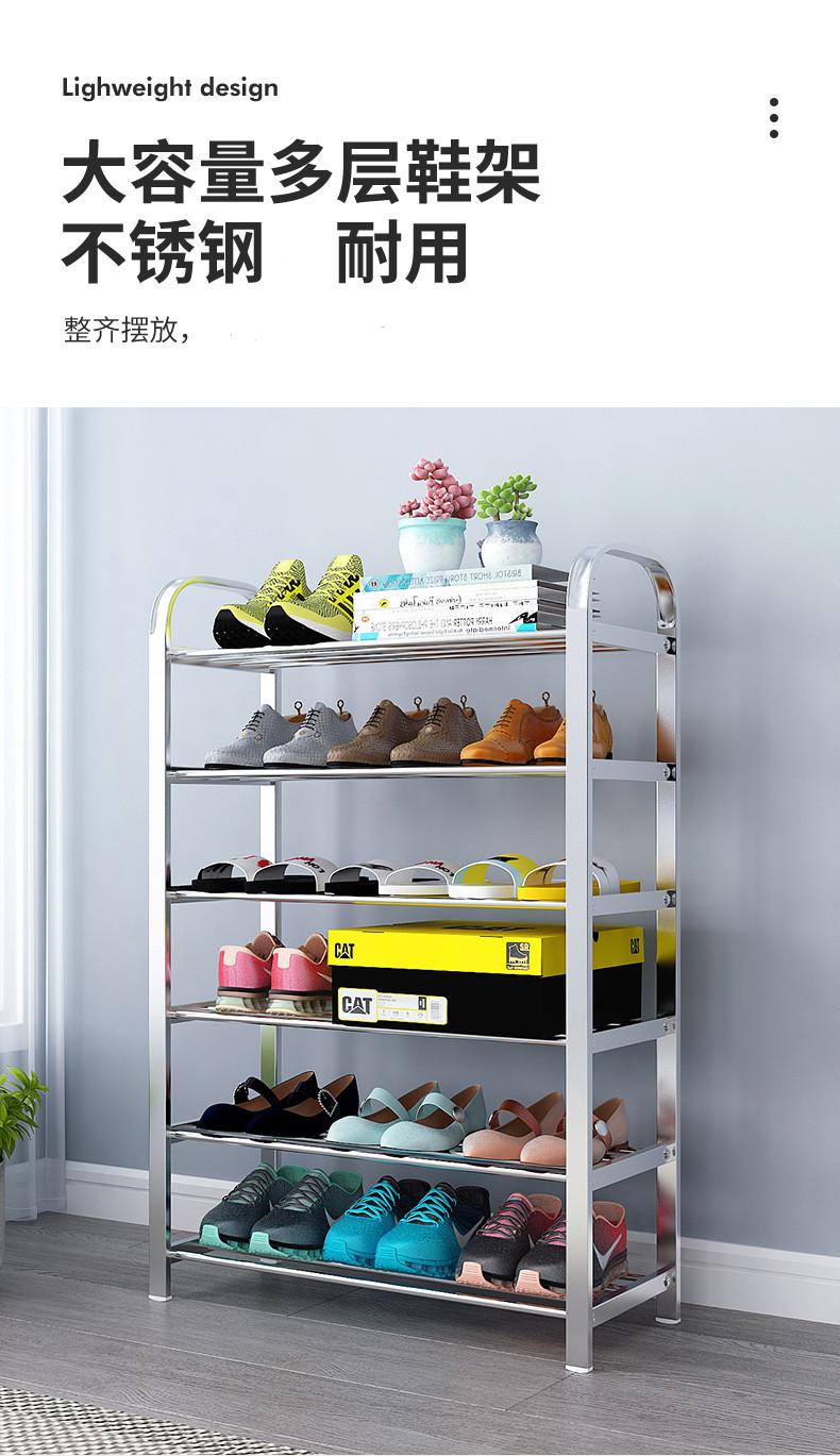 Zapatero de acero inoxidable, sencillo, para puerta de entrada, para el hogar, económico, para interiores, zapatero, bonito, con almacenamiento multicapa.
