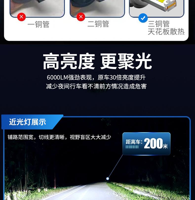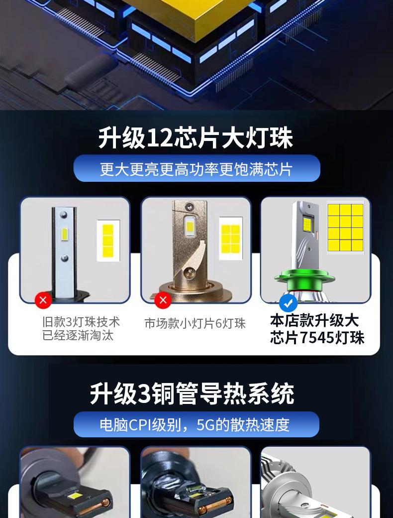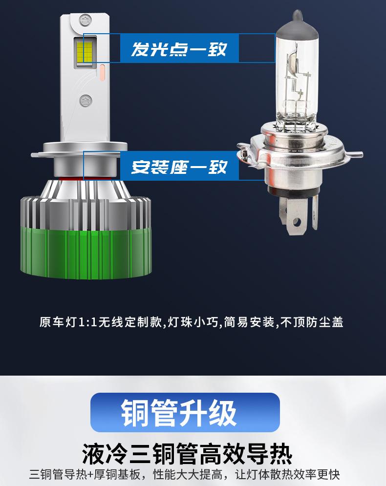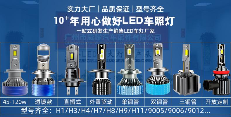 Faros LED Láser de Alta Potencia de 130W Personalizados Transfronterizos Tres Tubos de Cobre H7 Luces de Coche H4 Bombillas de Faro Superbrillantes