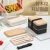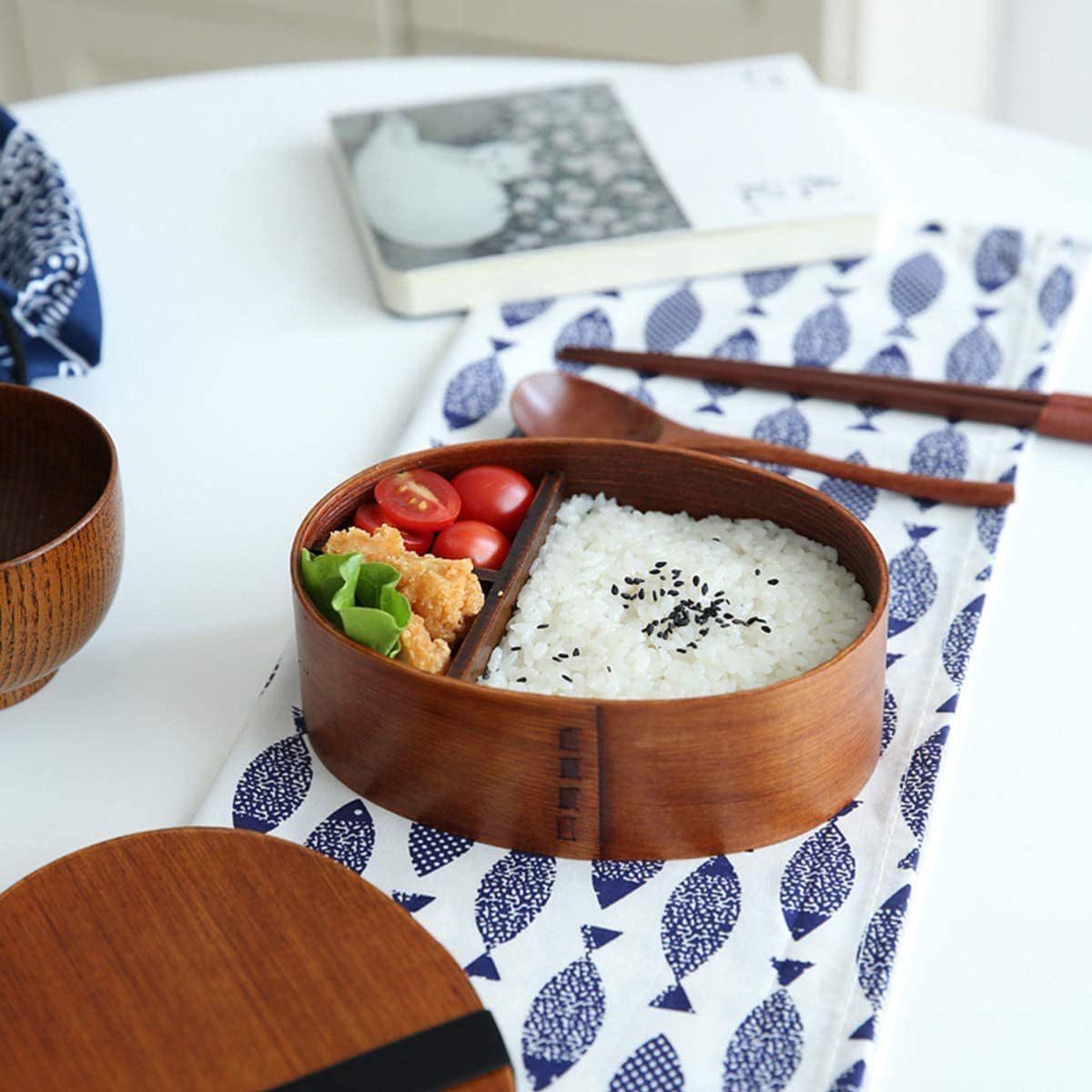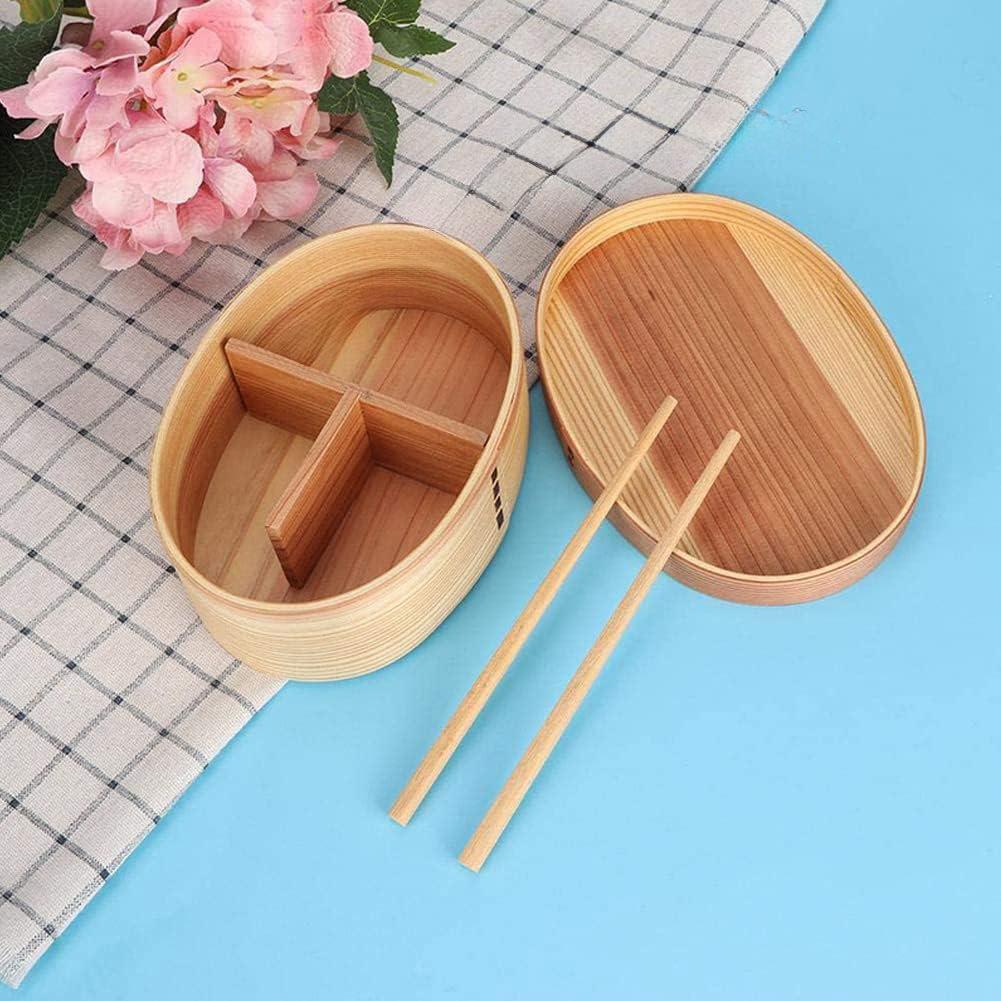 Lonchera de madera, lonchera japonesa de una sola capa con compartimentos, lonchera para estudiantes y estudiantes de oficina, lonchera portátil para picnic