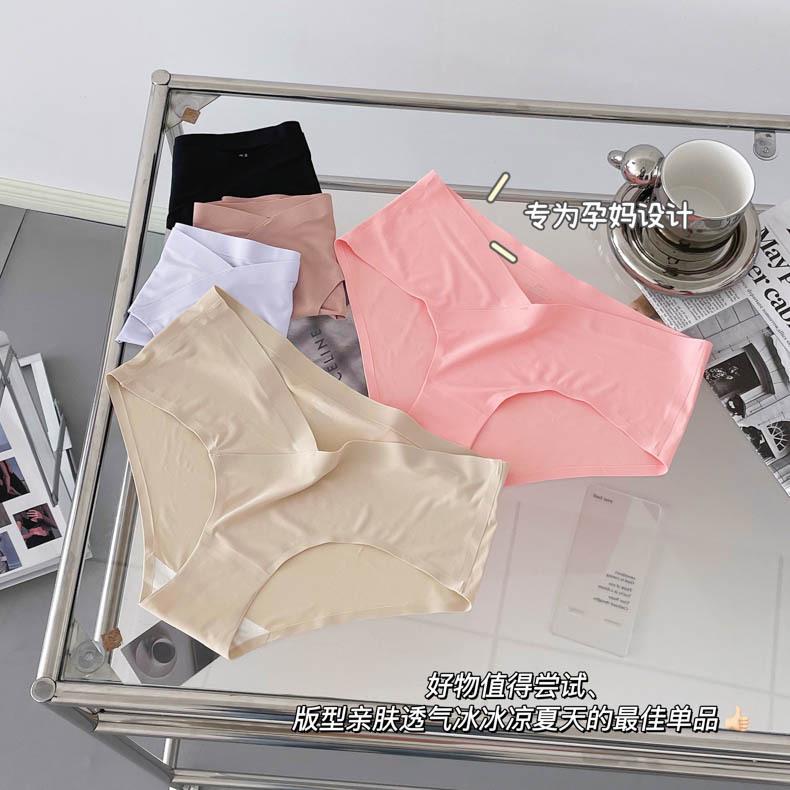 (Cinco Piezas) fabricantes venta al por mayor una pieza de ropa interior de cintura baja para mujeres embarazadas calzoncillos V sin costuras para el vientre Seda de Hielo