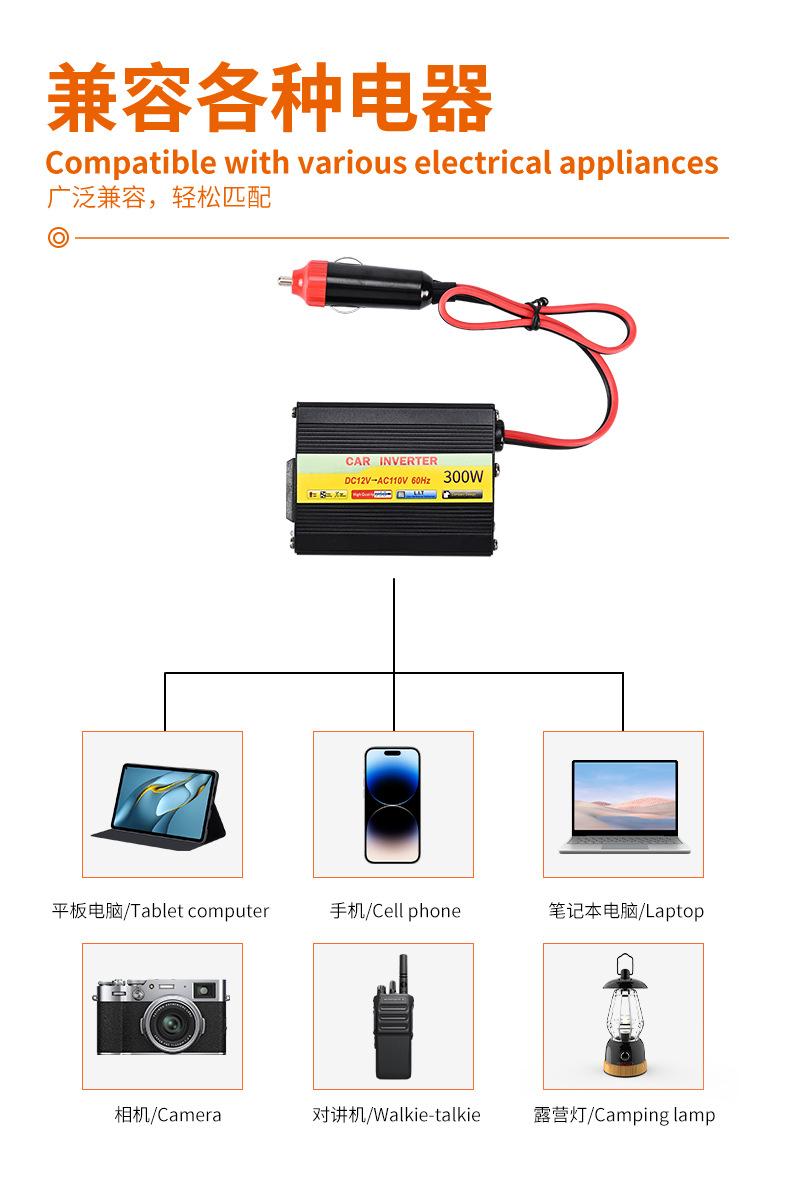 Inversor de Coche de 150W Potencia Completa 12V a 110V CC a CA Corrección de Potencia Inversor de Onda Senoidal Fuente de Alimentación