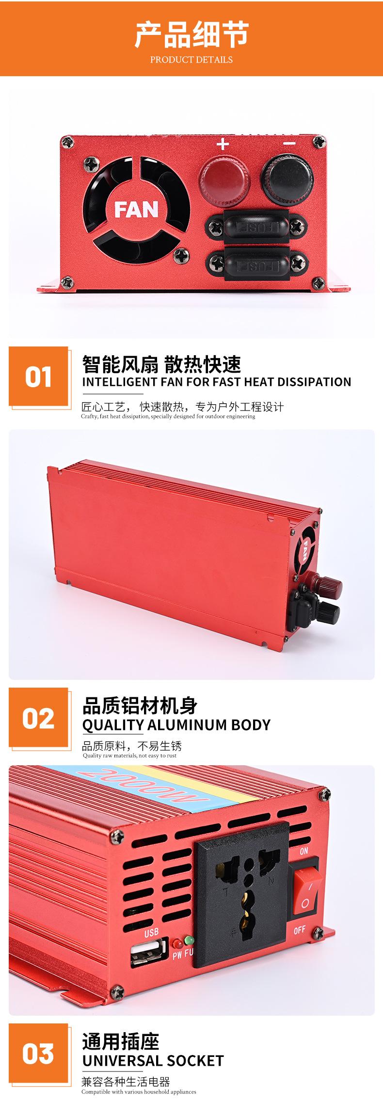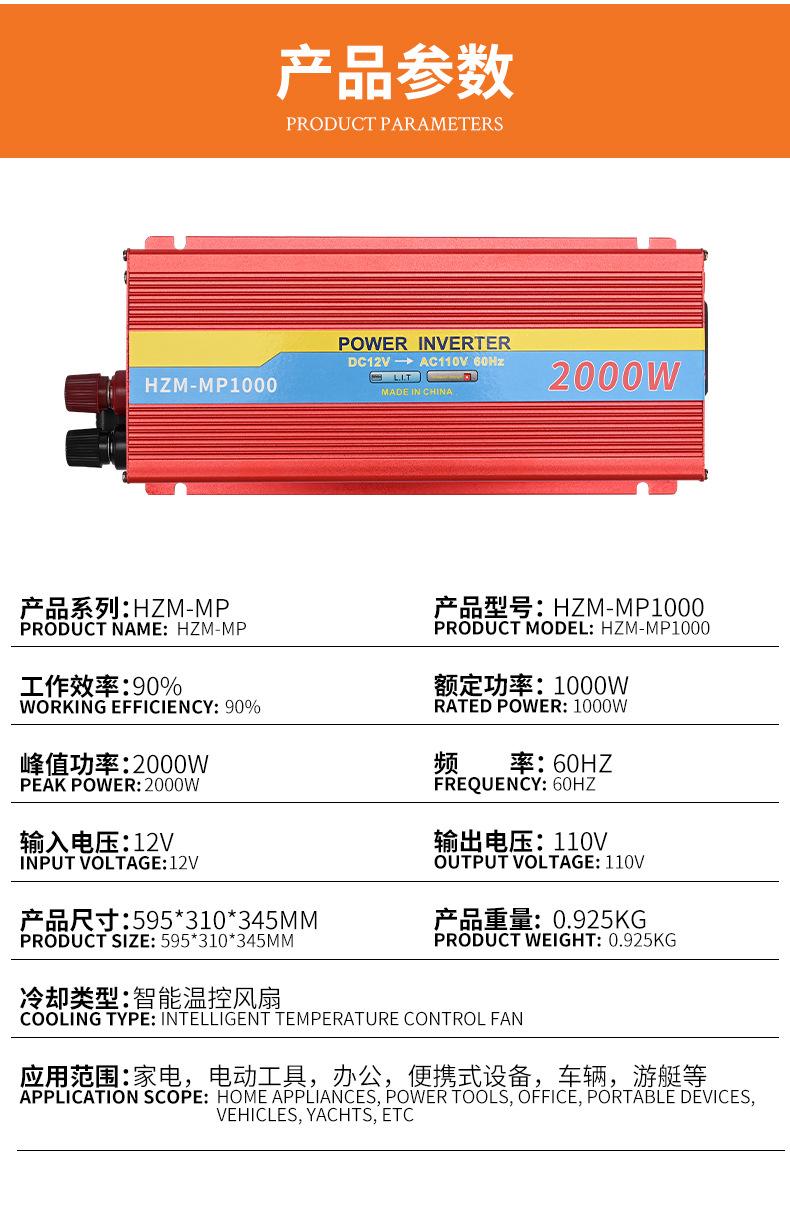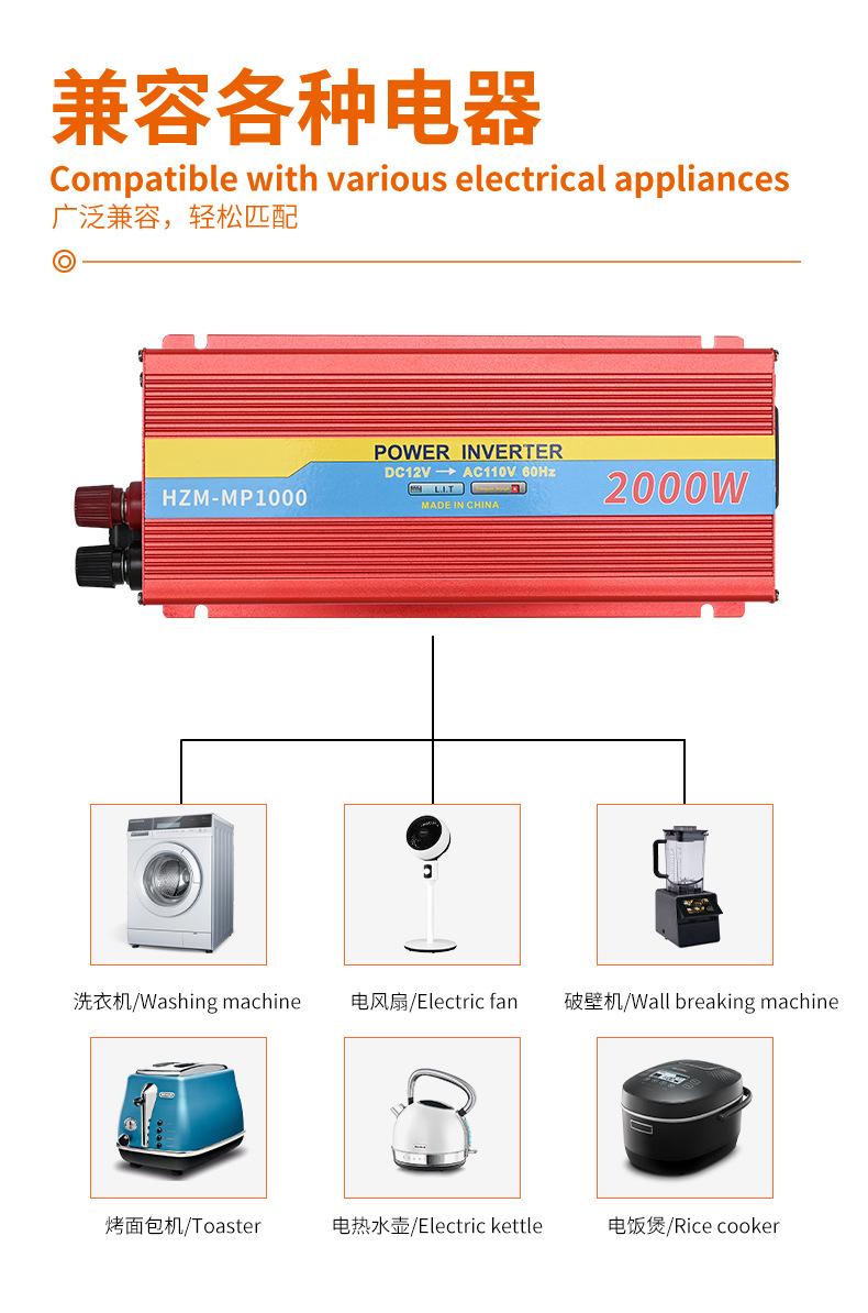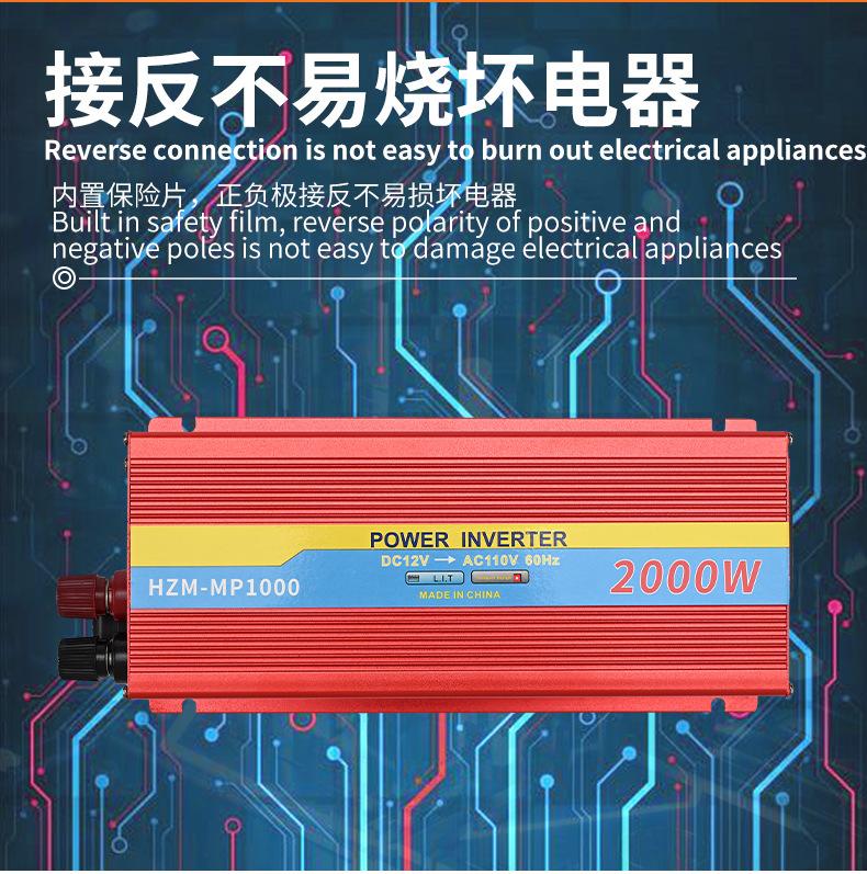 Inversor 1000W Coche Hogar Oficina 12V24V a 110V Inversor CC a CA Fuente de Alimentación Onda Sinusoidal