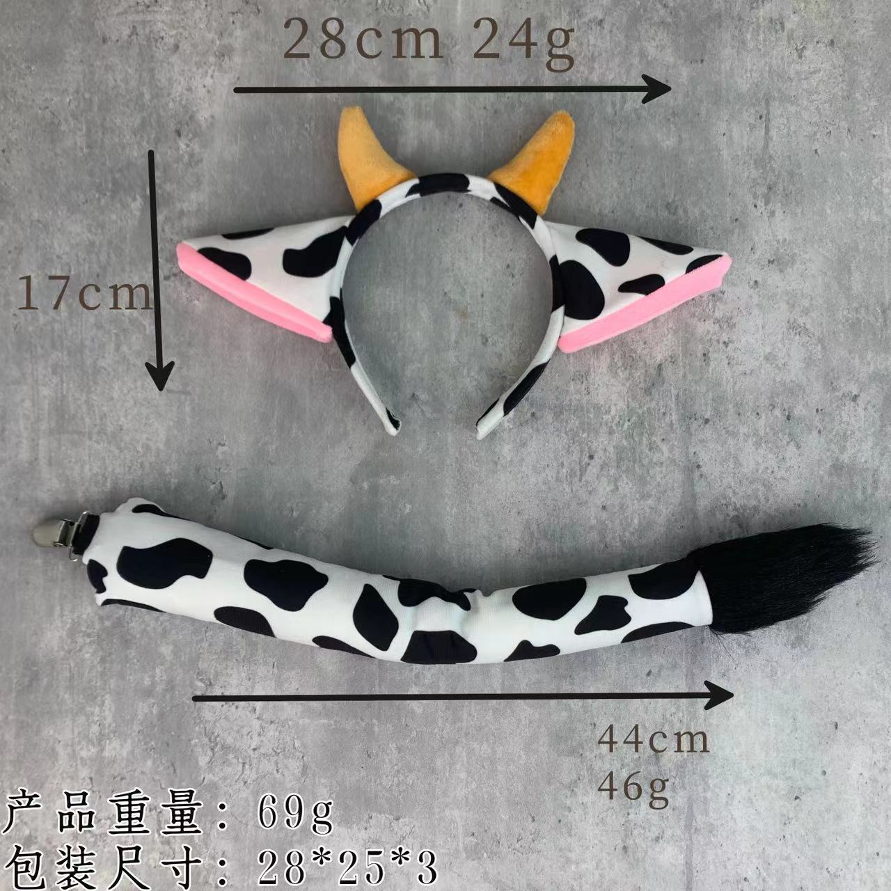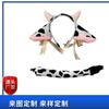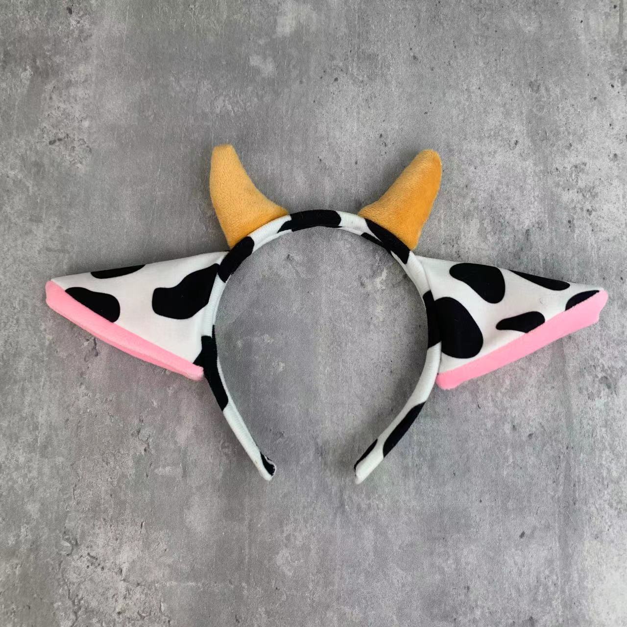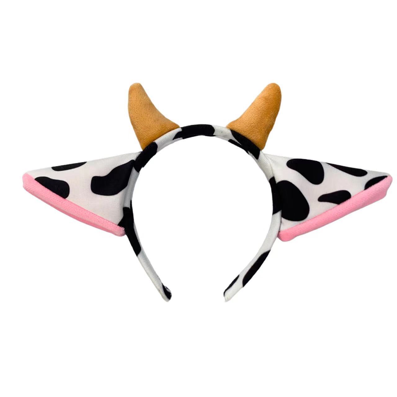 Diadema con orejas de vaca cruzadas para Halloween, con pelo de animal, para niños, con dibujos animados, venta al por mayor