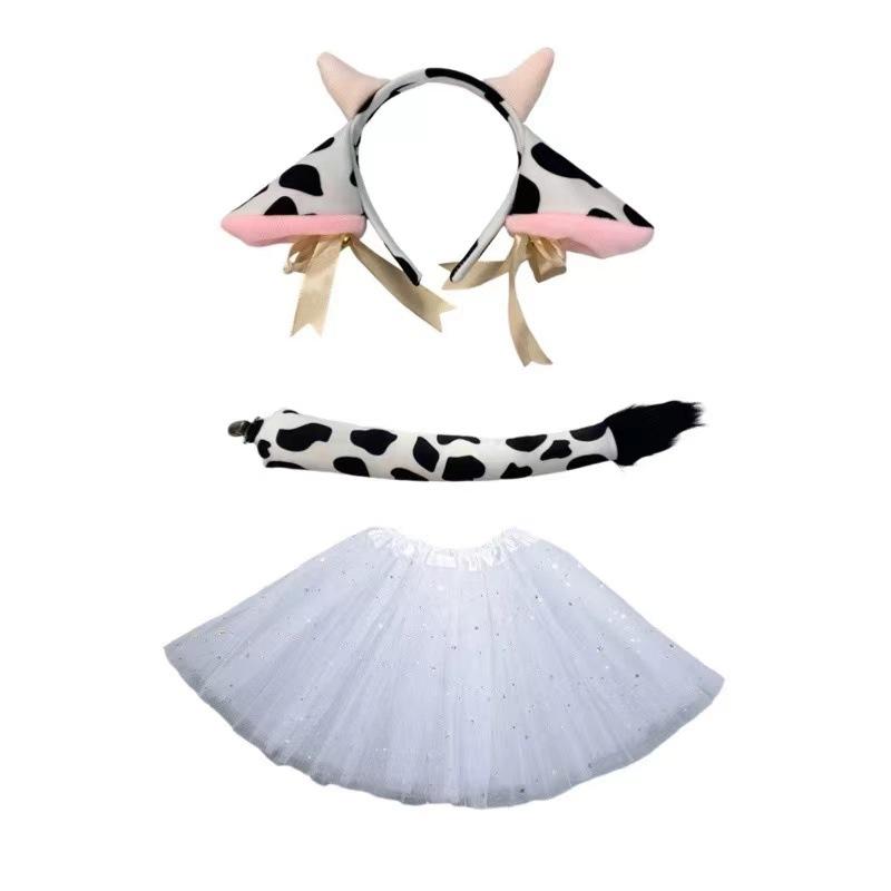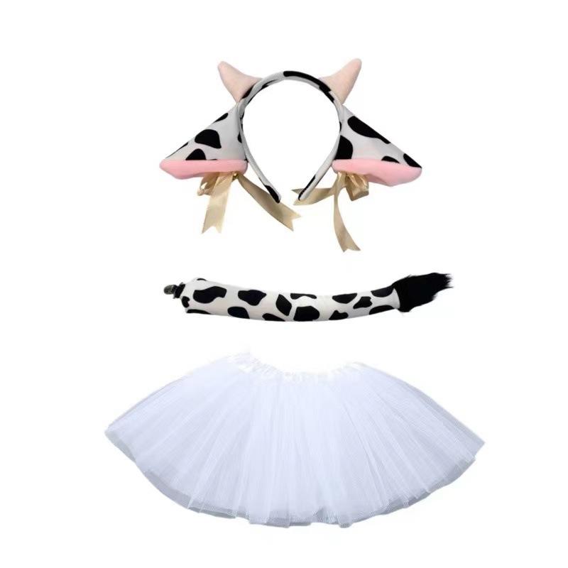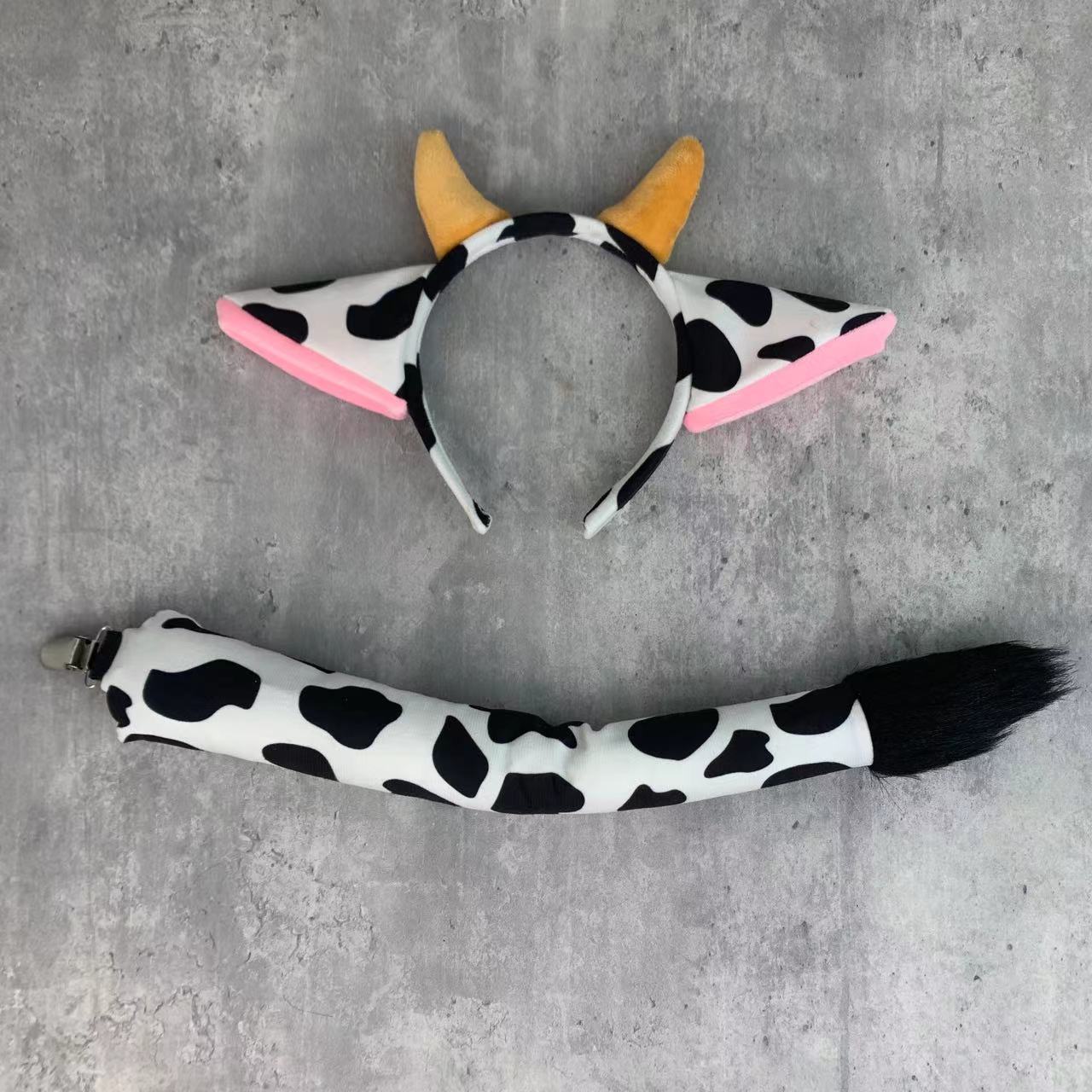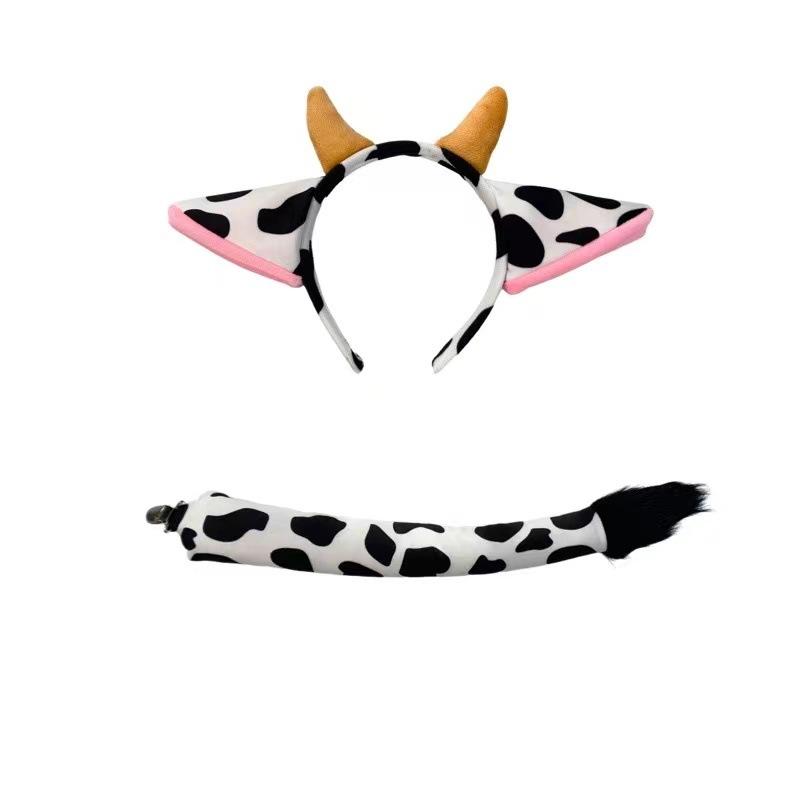 Diadema con orejas de vaca cruzadas para Halloween, con pelo de animal, para niños, con dibujos animados, venta al por mayor