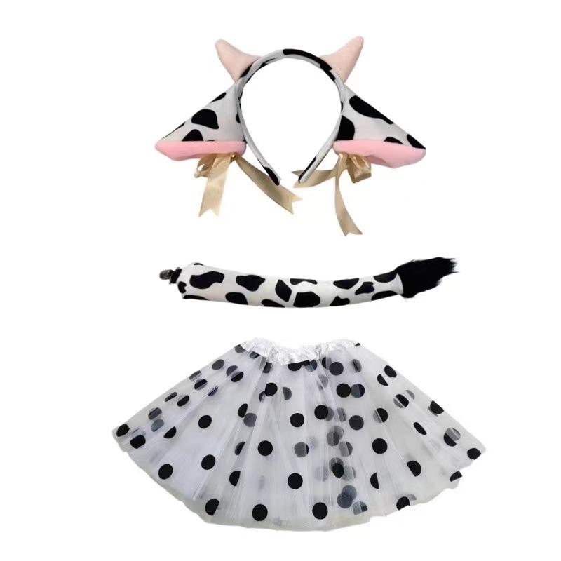 Super soft brown cow two-piece set + polka dot gauze skirt