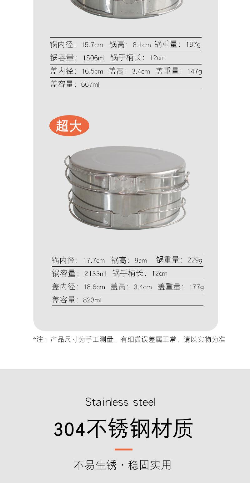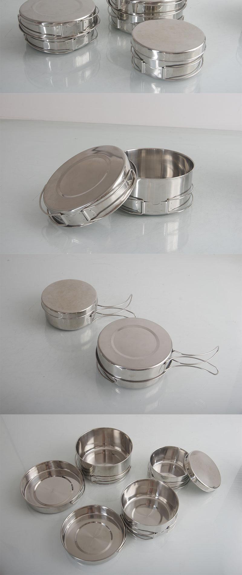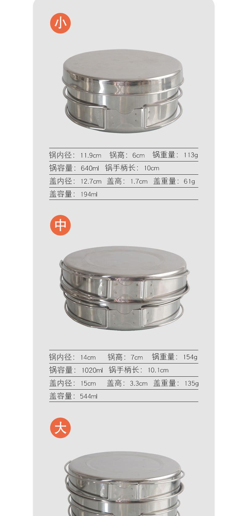 Juego de ollas portátiles de acero inoxidable 304, tamaño múltiple, personalizables, para acampar, picnic, plegables, con asa