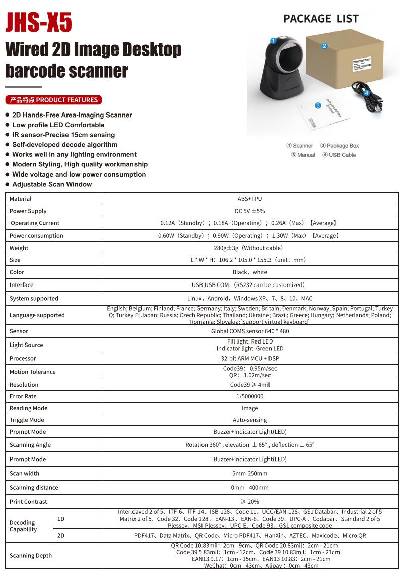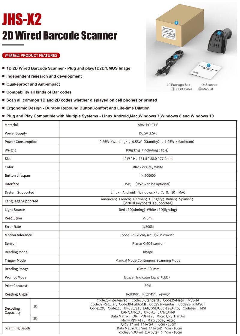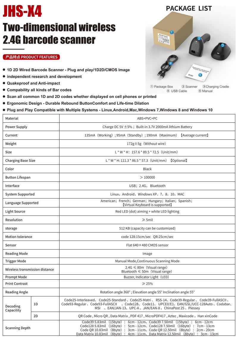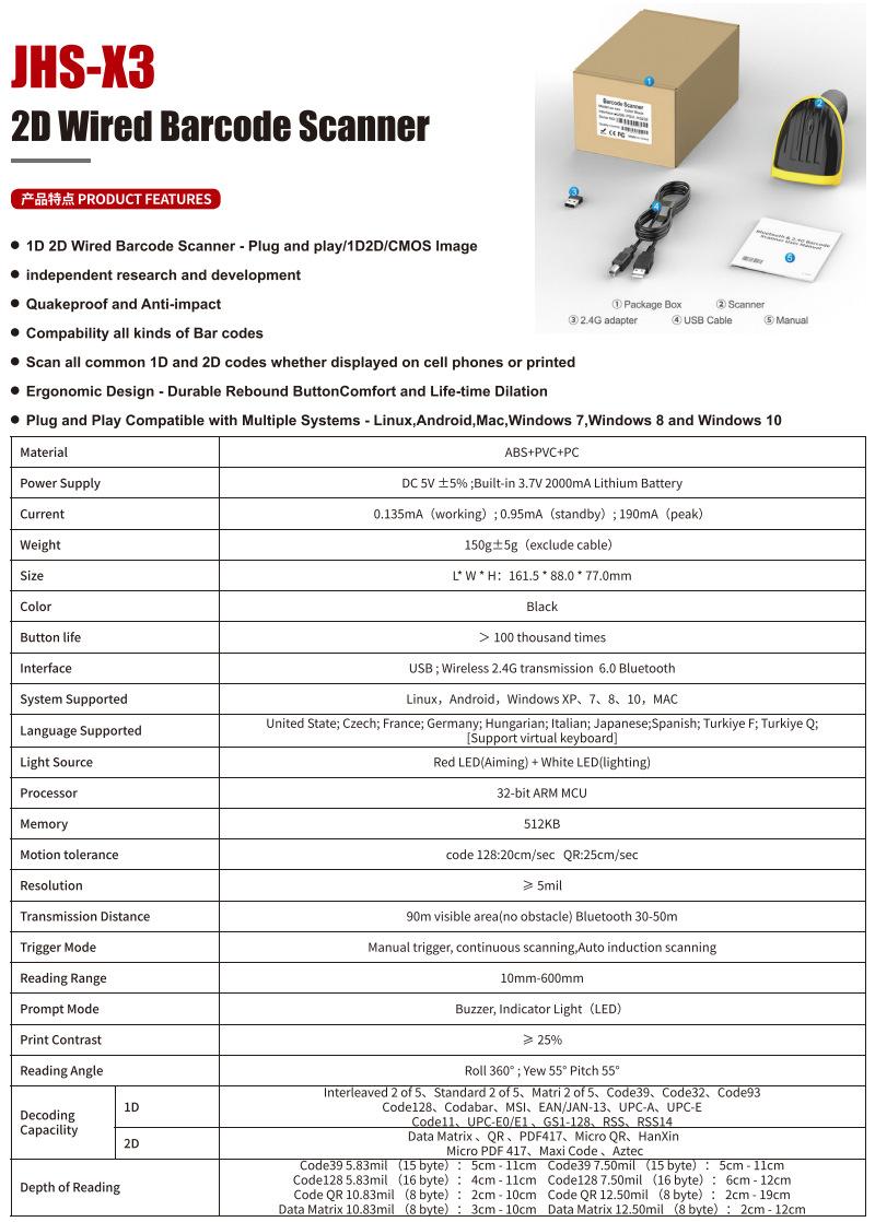 Plataforma de escaneo de código bidimensional, pistola de escaneo de código de barras bluetooth, código de escaneo de caja registradora, pago, pistola de escaneo láser unidimensional, fábrica al por mayor