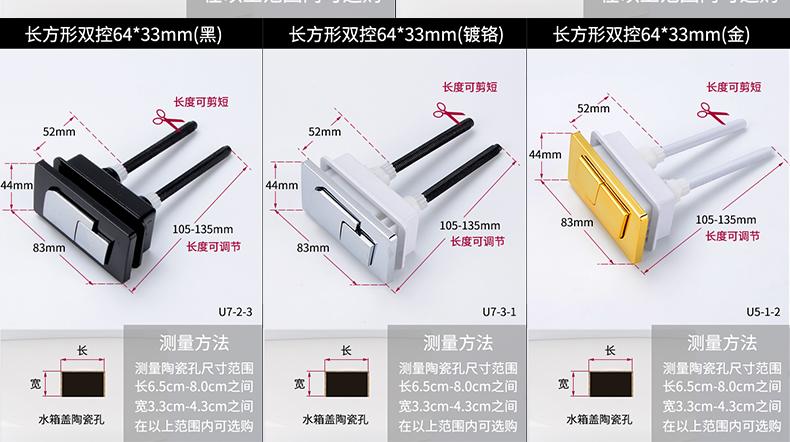 Botón de Presión para Inodoro Rectangular Botón de Inodoro Accesorios para Tanque de Agua Descarga de Inodoro Universal Doble Presión Venta al por Mayor