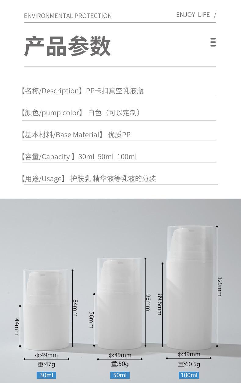 Botella de emulsión al vacío de 30 ml, 50 ml y 100 ml, botella de base aislante, botella de plástico prensado PP, botella cosmética, material de embalaje.
