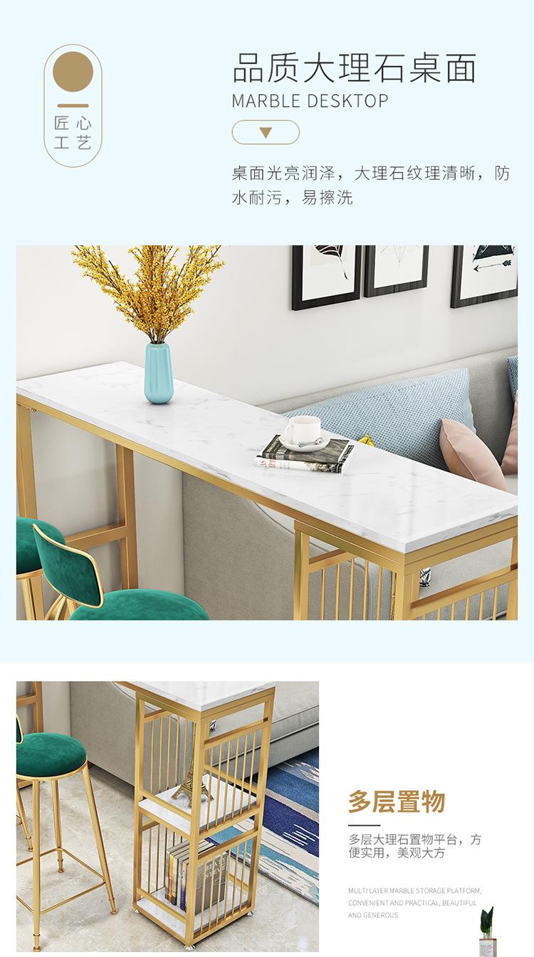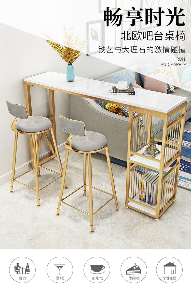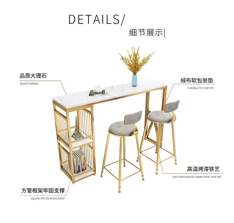Mesa de bar de mármol nórdico, mesa alta, mesa de bar y silla, tienda de té con leche, barra de ventana de pared, mesa larga para balcón