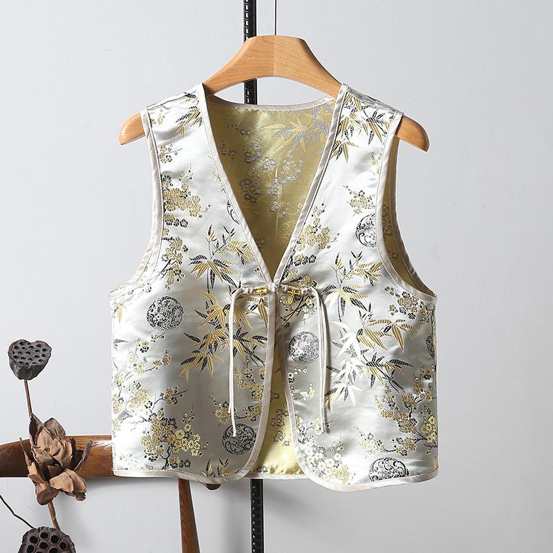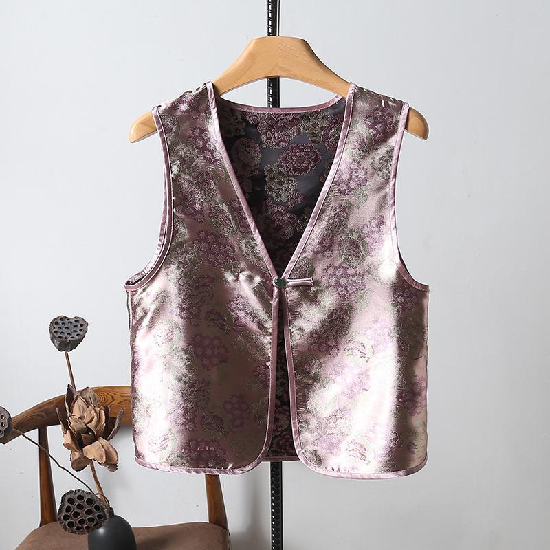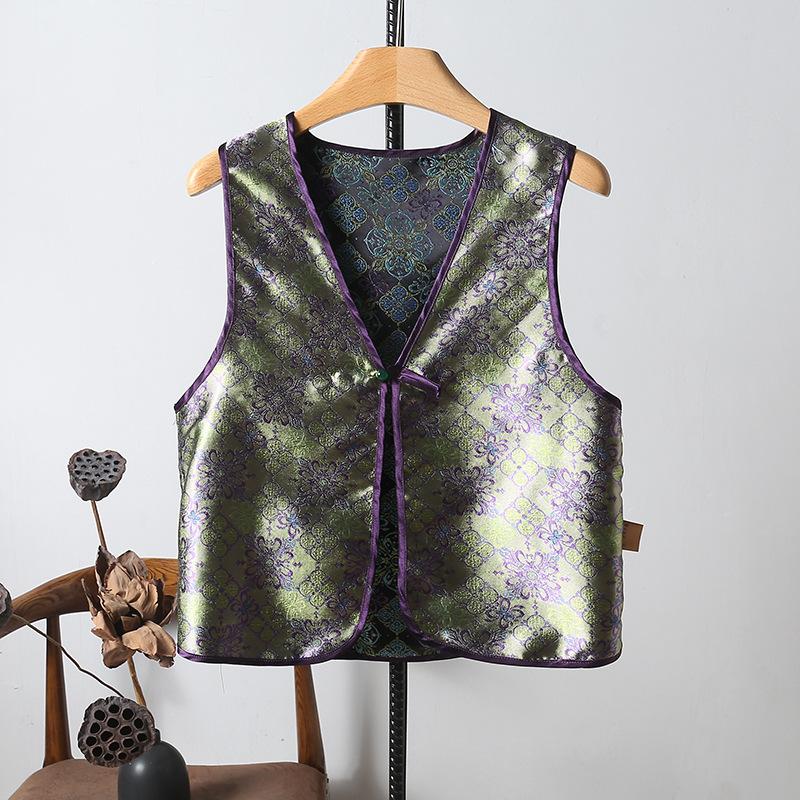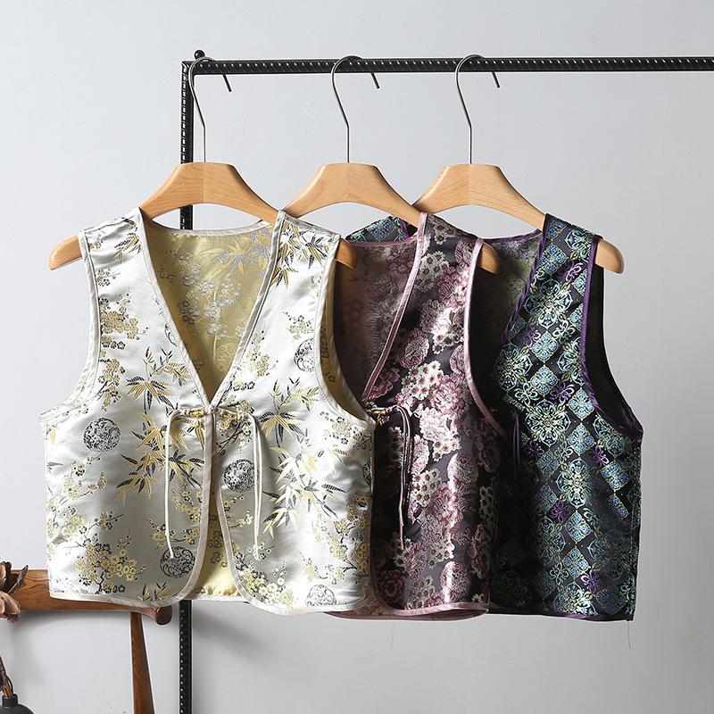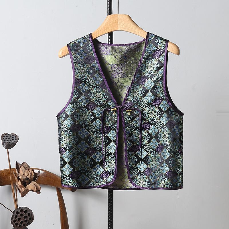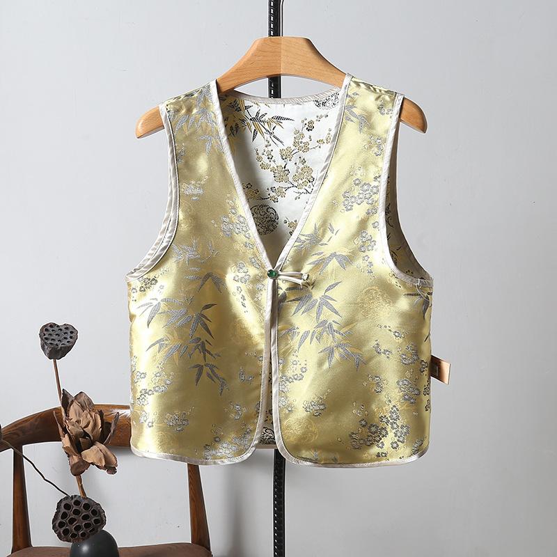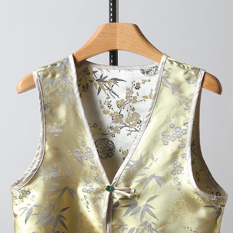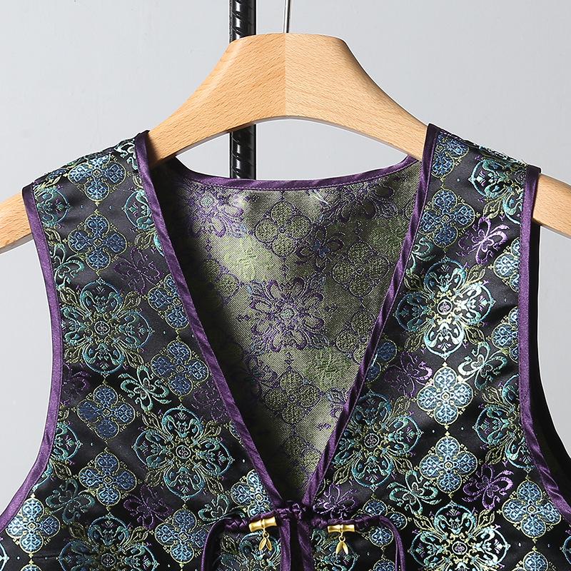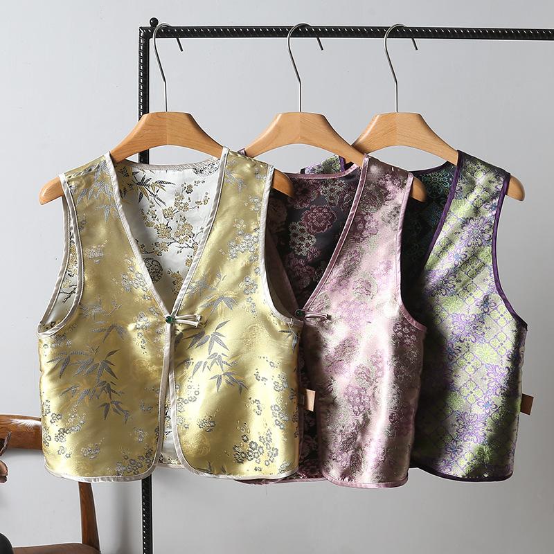 Chaleco nuevo de Jacquard con hebilla retro, doble cara, estilo nacional chino, sin mangas, 2024
