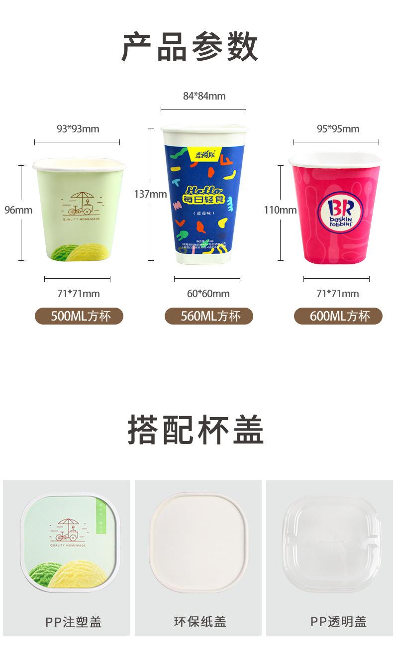 Vaso de papel cuadrado, vaso desechable, yogur, café, leche de soja, para llevar, vaso para bebidas calientes con tapa y personalización de logotipo.