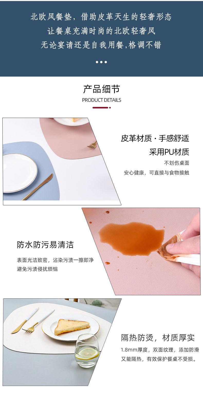Tapete de cuero estilo nórdico, tapete de PU impermeable y a prueba de aceite, mantel individual triangular con aislamiento térmico, mantel individual occidental para hotel, posavasos de distribución