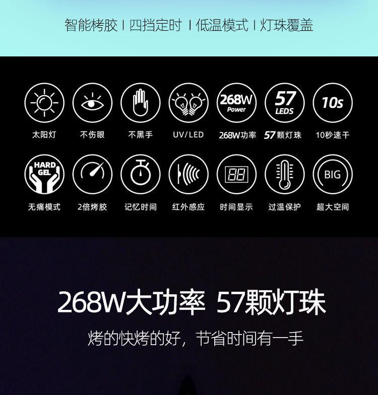 Nueva máquina de fototerapia con lámpara de uñas, lámpara de fototerapia de uñas de secado rápido, lámpara de horneado de uñas de secado rápido de alta potencia de 268 W, caliente transfronterizo