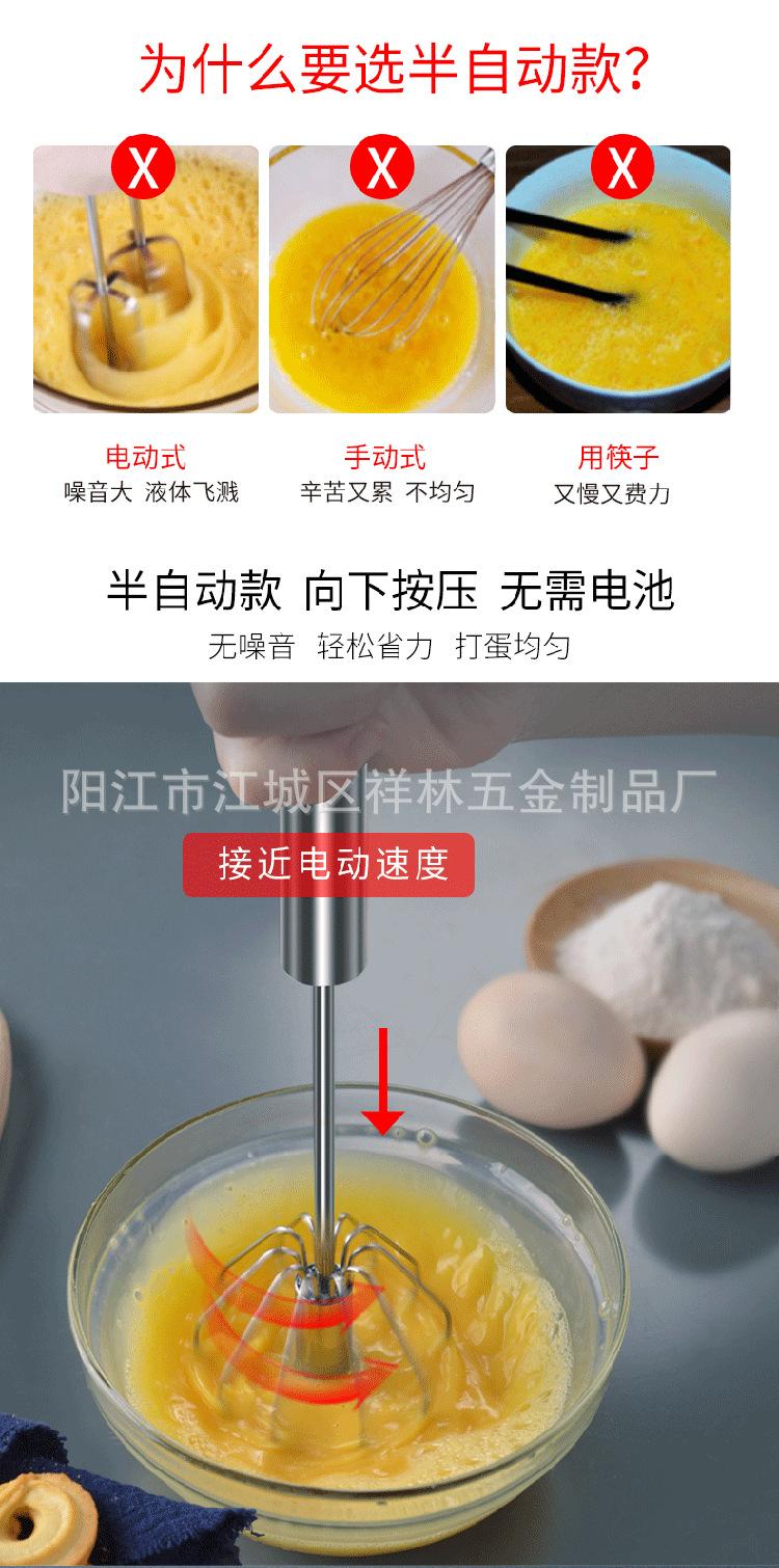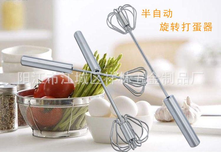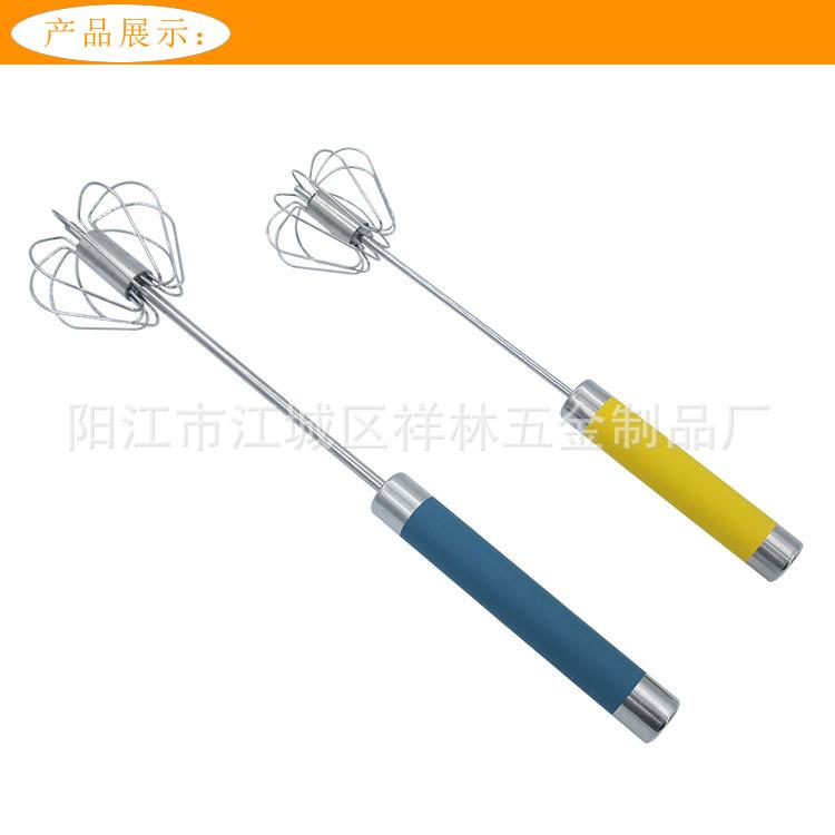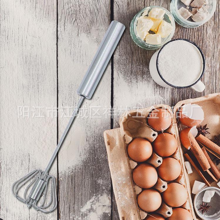 Batidor de huevos de acero inoxidable, herramienta para hornear, batidor de huevos semiautomático, espumador de leche giratorio, directo de fábrica