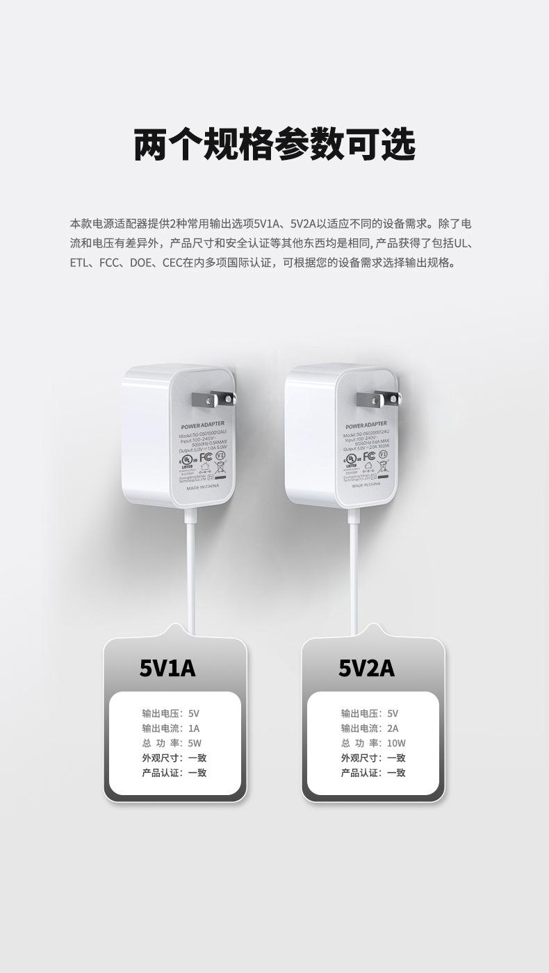 Adaptador de corriente estadounidense de 5v2a con certificación UL Estándar estadounidense de alta calidad Adaptador de corriente simple con certificación FCC