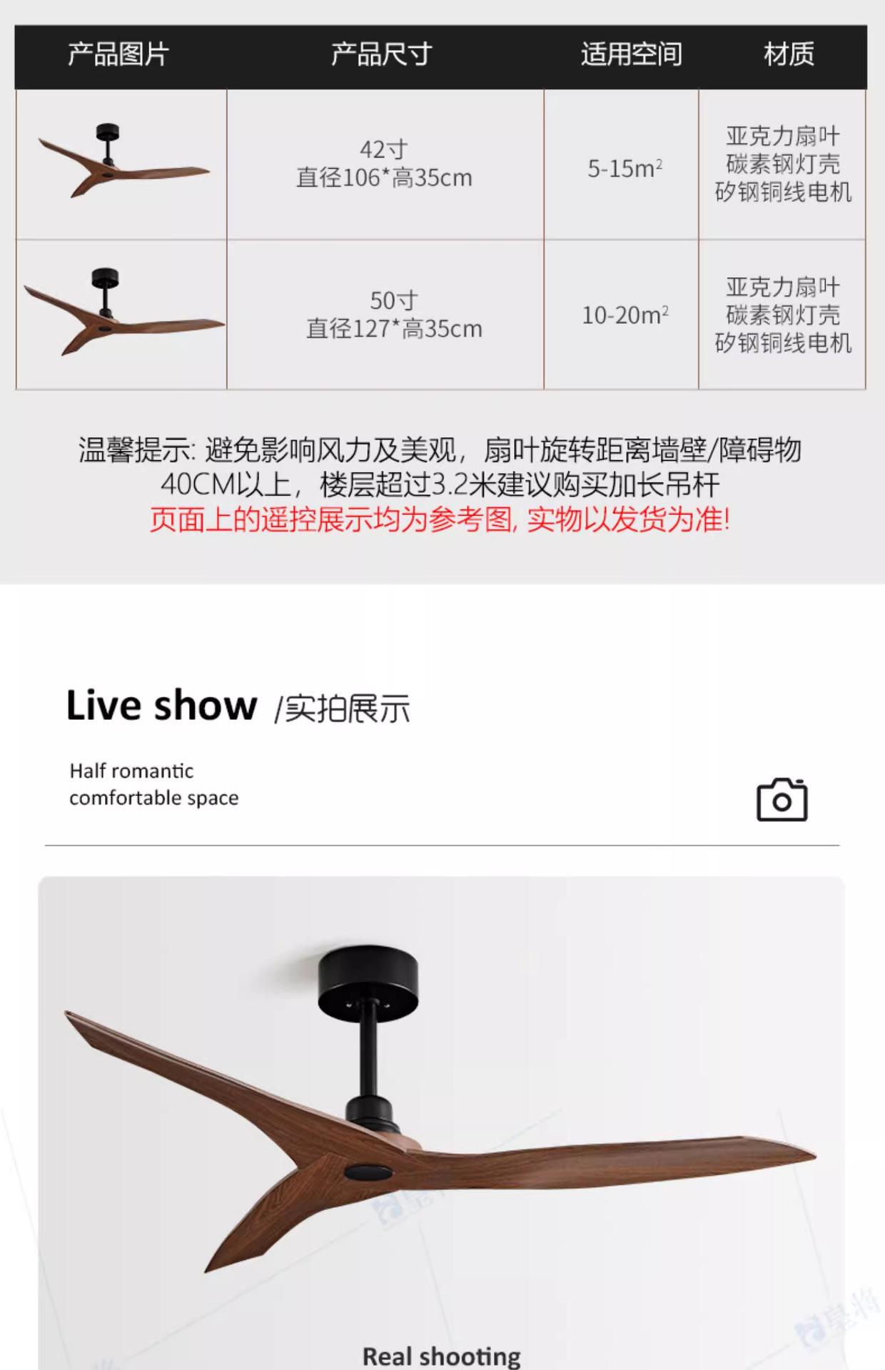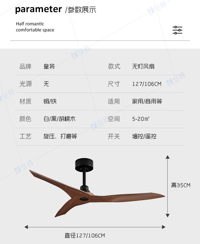 Ventilador Nórdico de Alta Potencia sin Luz Restaurante Sala de Estar Industrial Comercial Ventilador Eléctrico Hogar Retro Frecuencia Variable Silencioso Ventilador de Techo